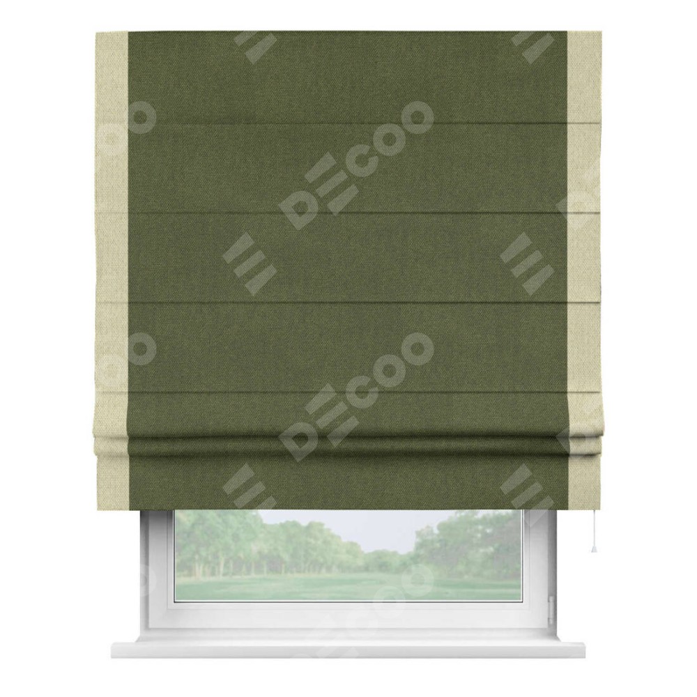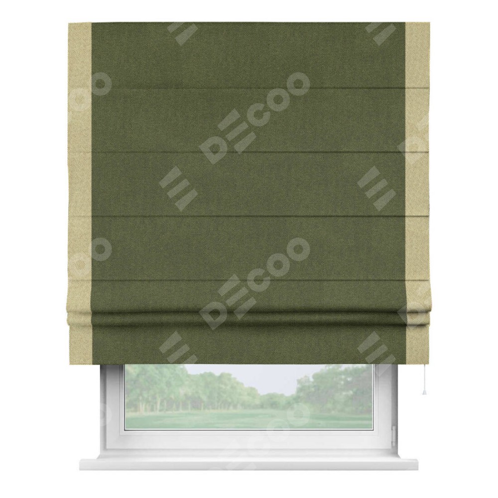 Римская штора «Кортин» для проема, лён димаут салатовый с кантом Стрим Дуо
