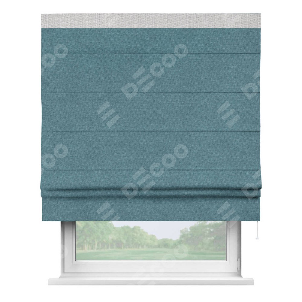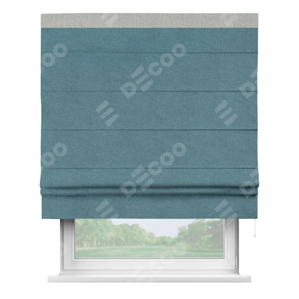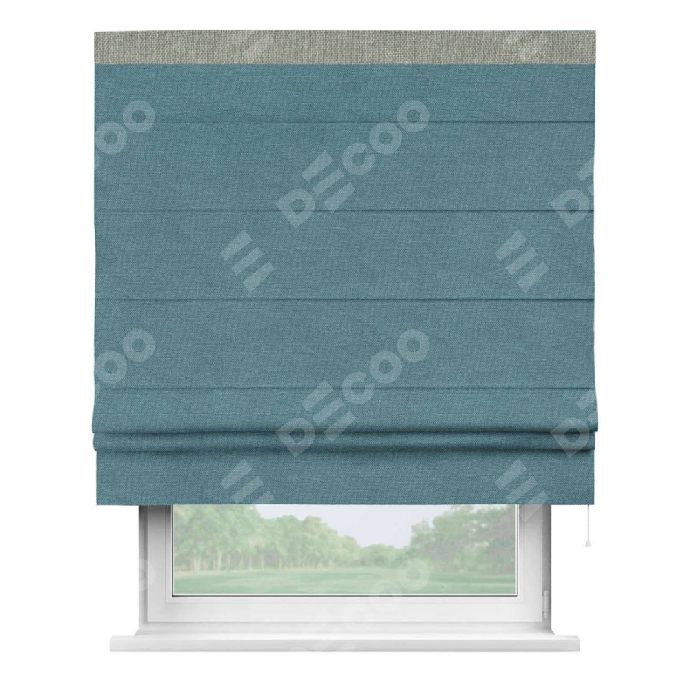 Римская штора «Кортин» для проема, лён димаут светло-синий с кантом Кинг