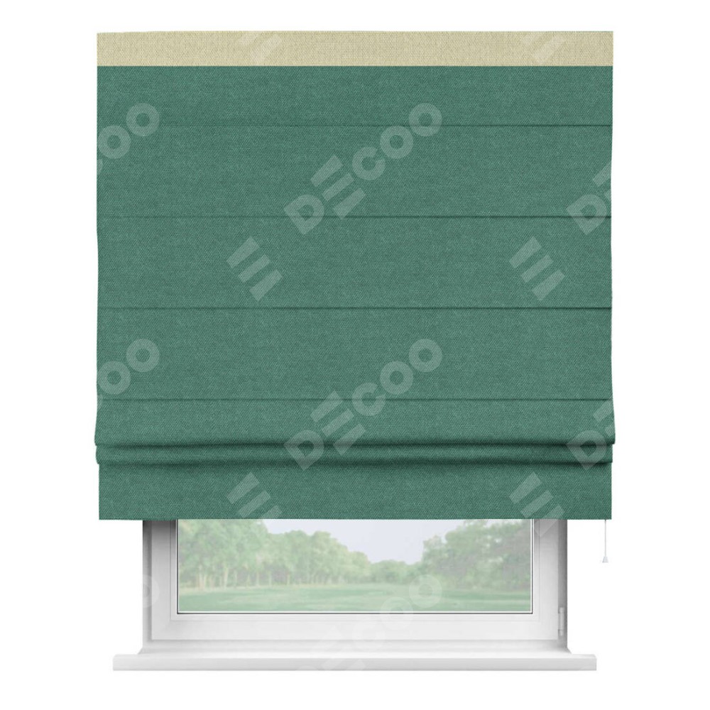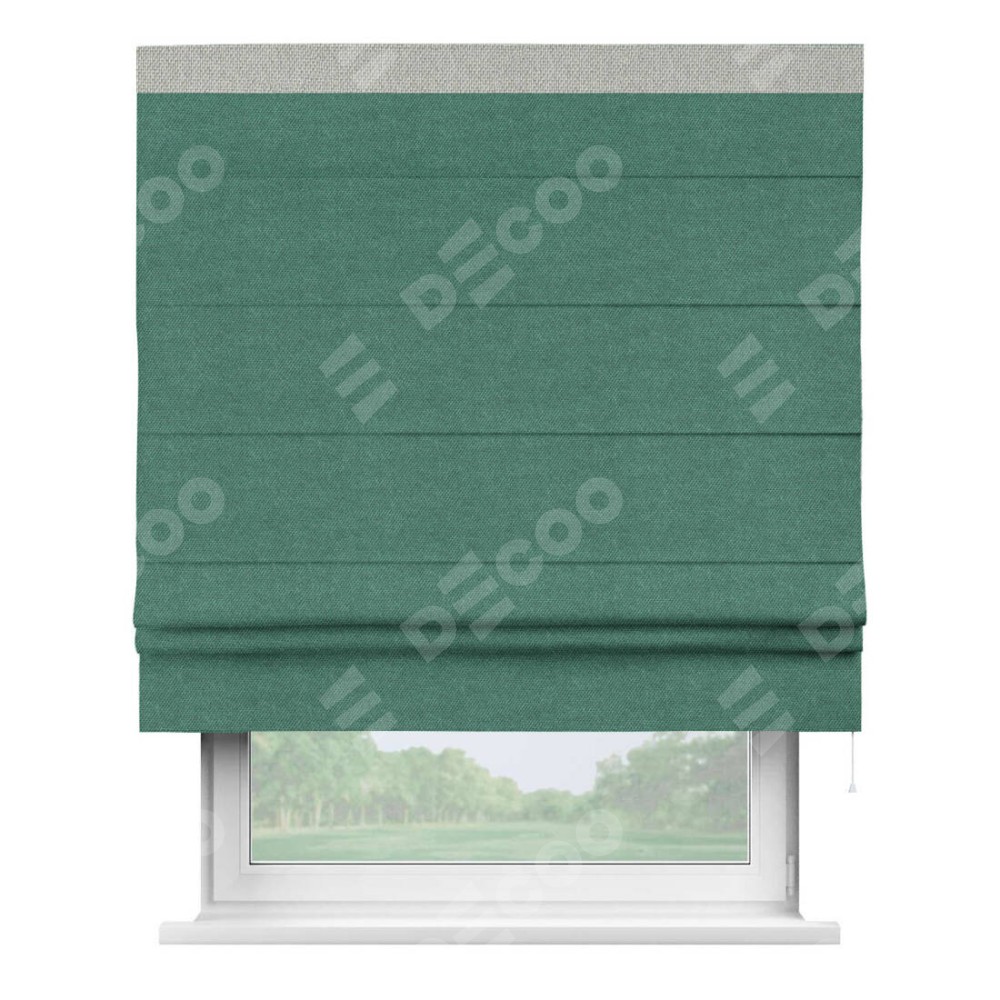 Римская штора «Кортин» для проема, лён димаут светло-бирюзовый с кантом Кинг