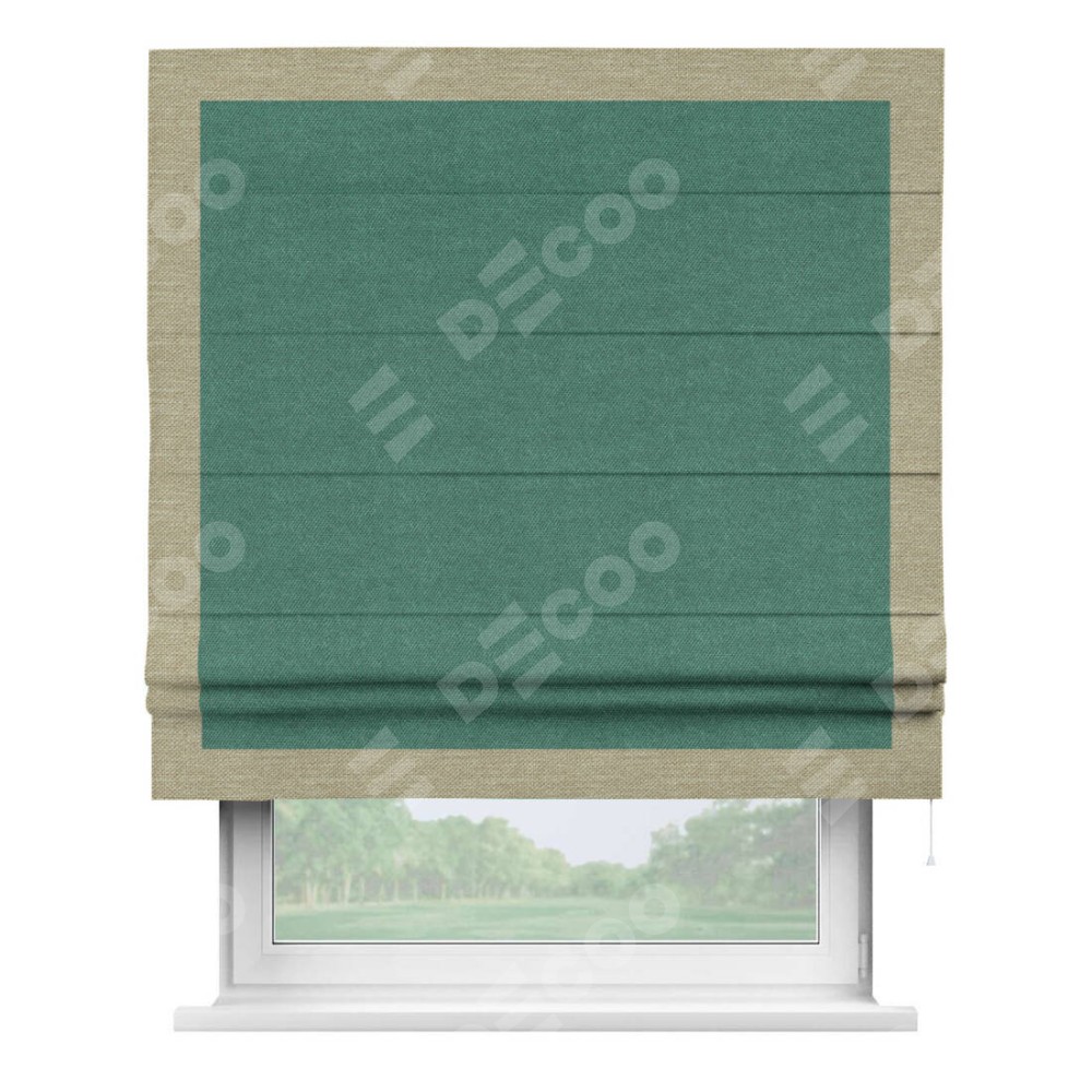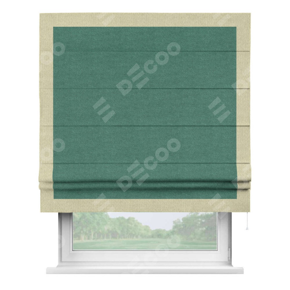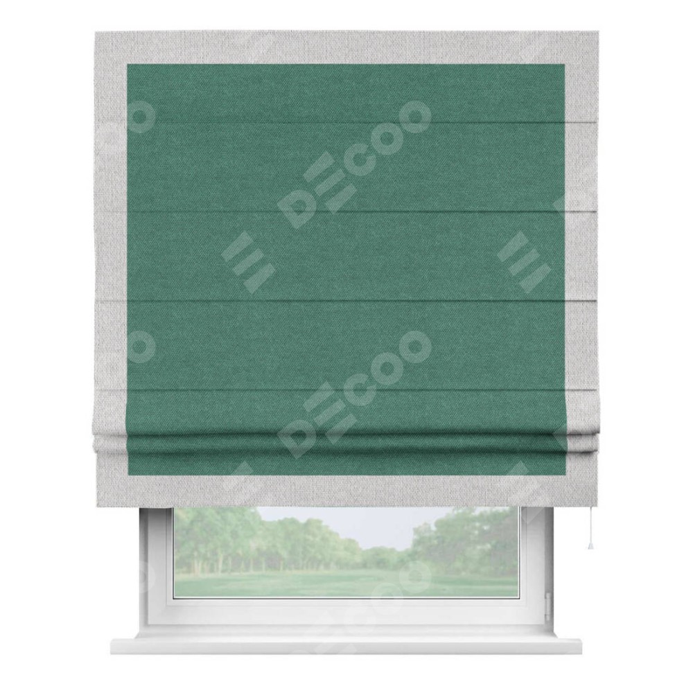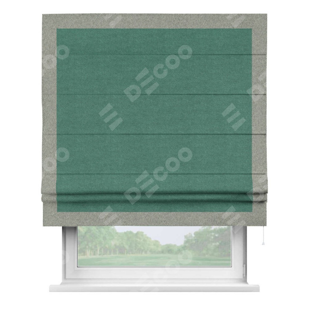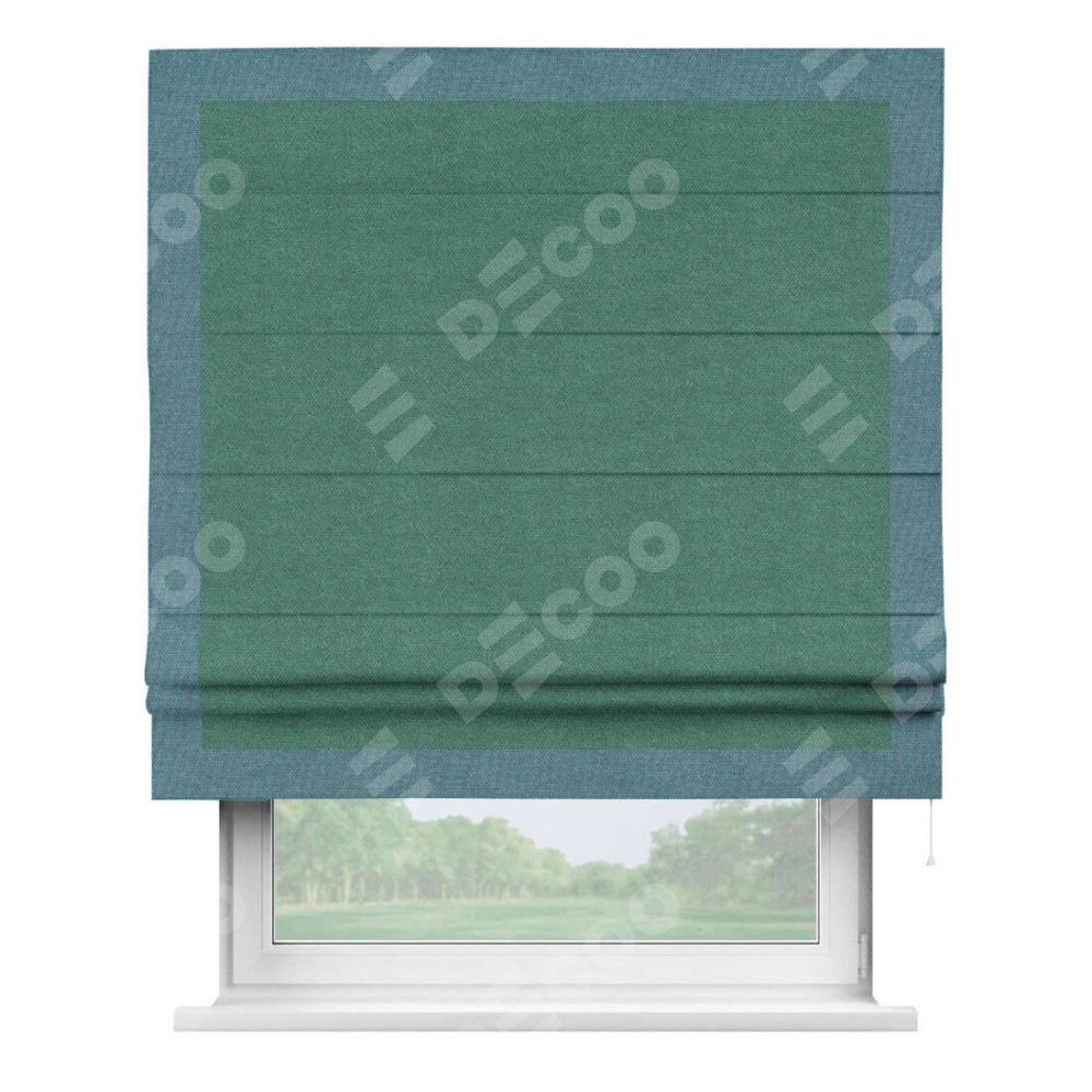 Римская штора «Кортин» для проема, лён димаут светло-бирюзовый с кантом Чесс