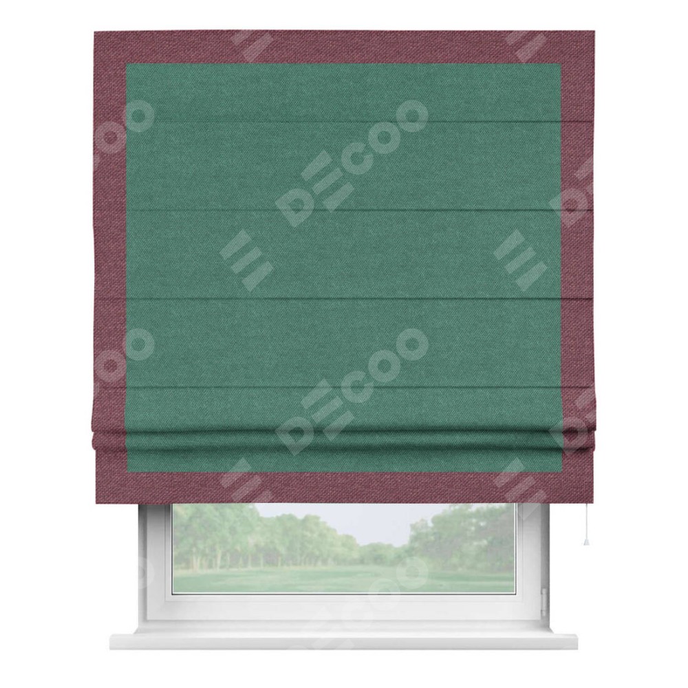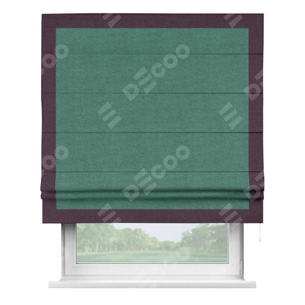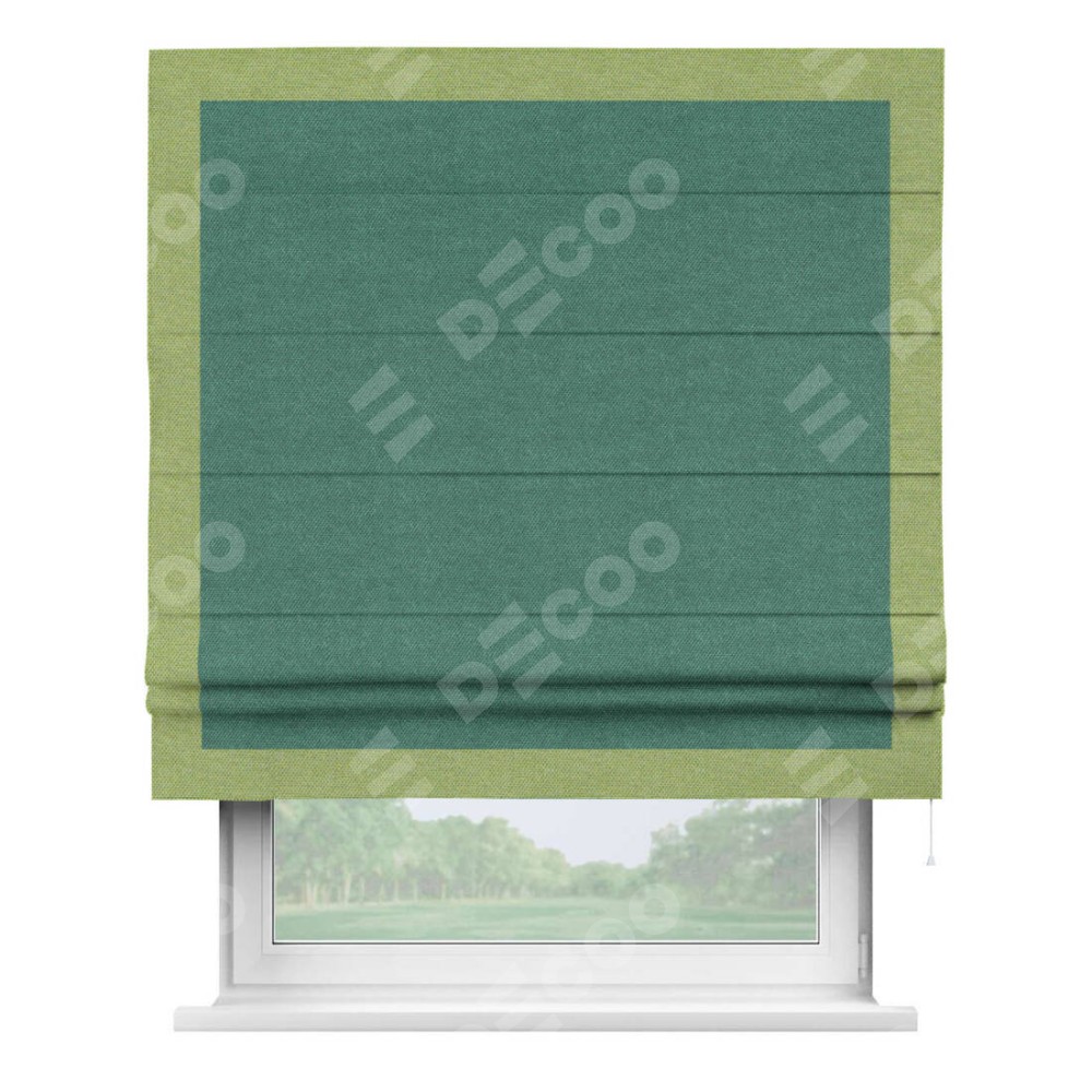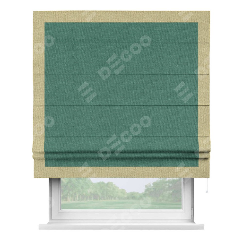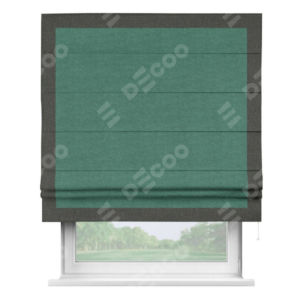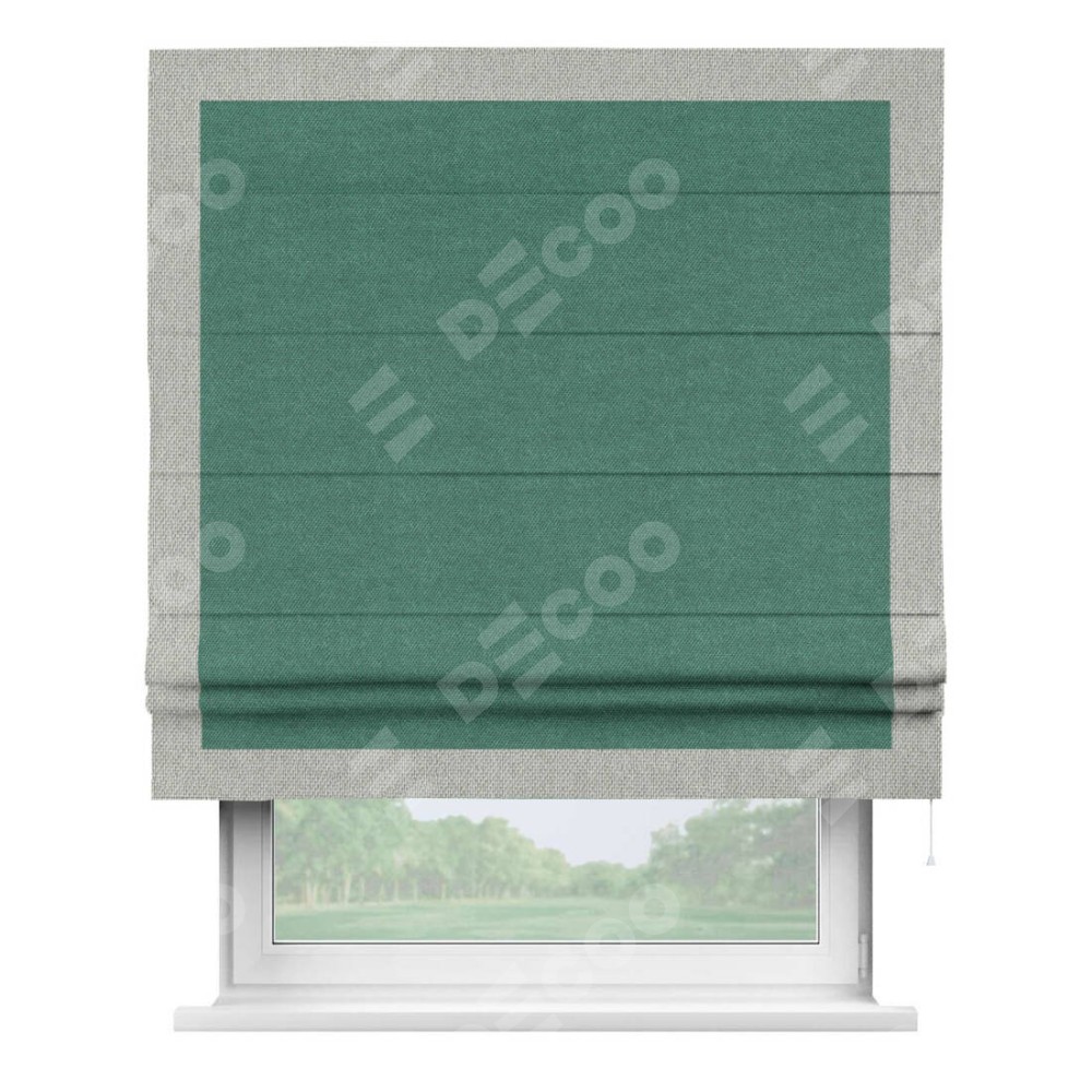 Римская штора «Кортин» для проема, лён димаут светло-бирюзовый с кантом Чесс