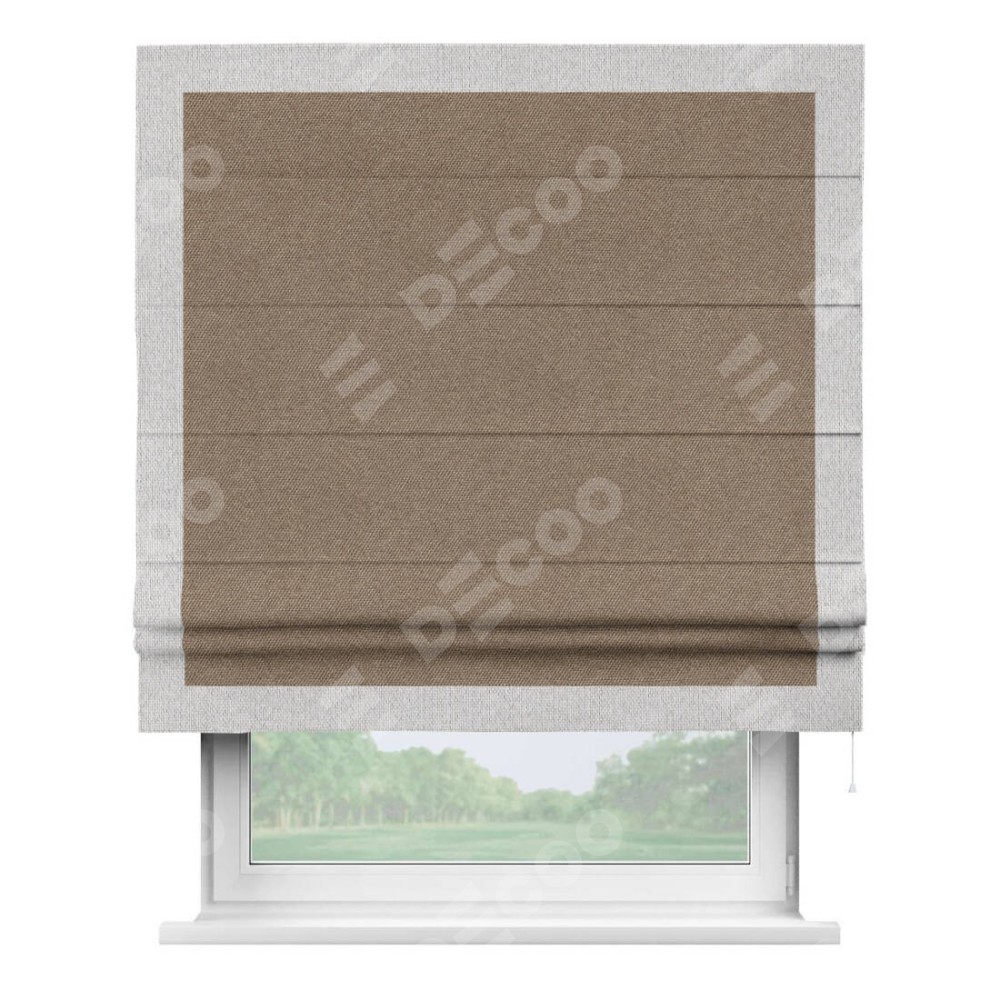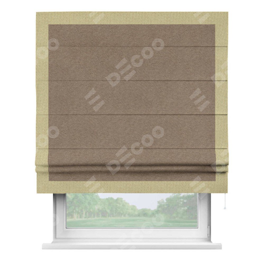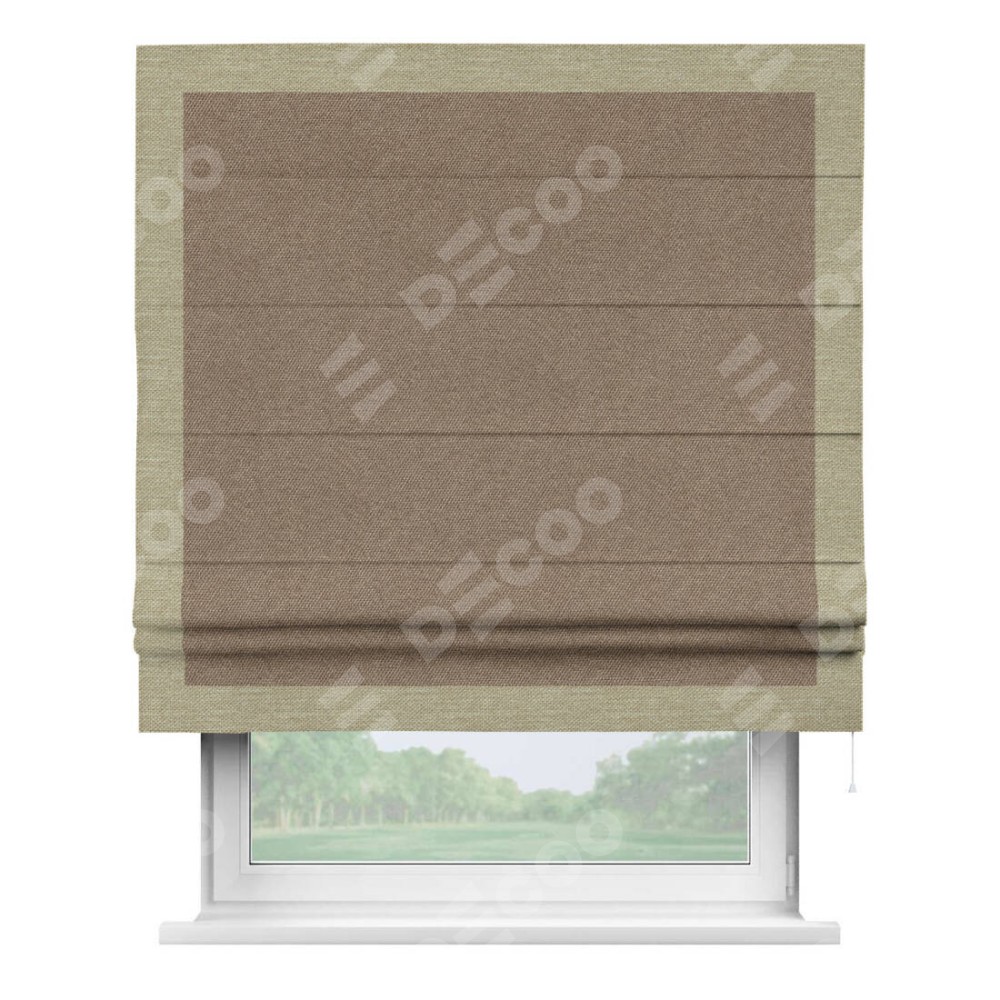 Римская штора «Кортин» для проема, лён димаут коричневый с кантом Чесс