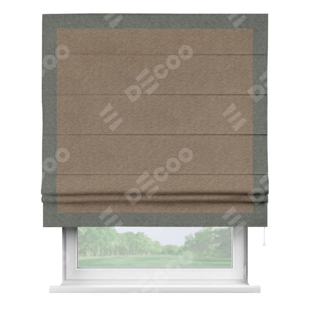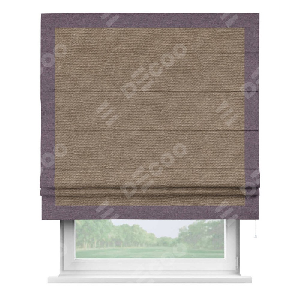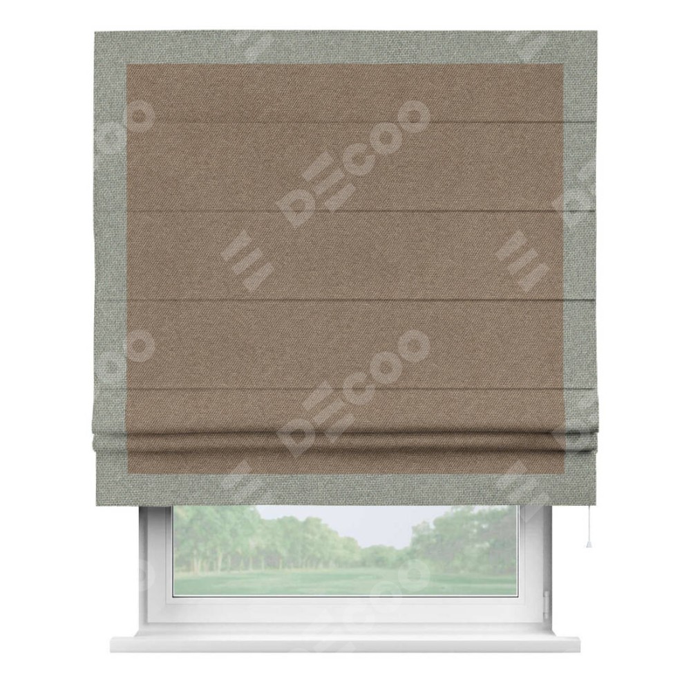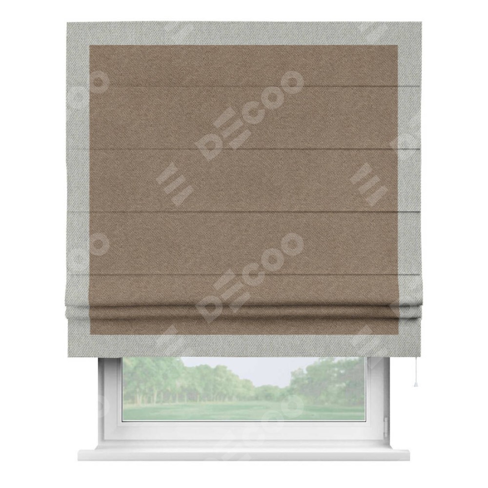 Римская штора «Кортин» для проема, лён димаут коричневый с кантом Чесс