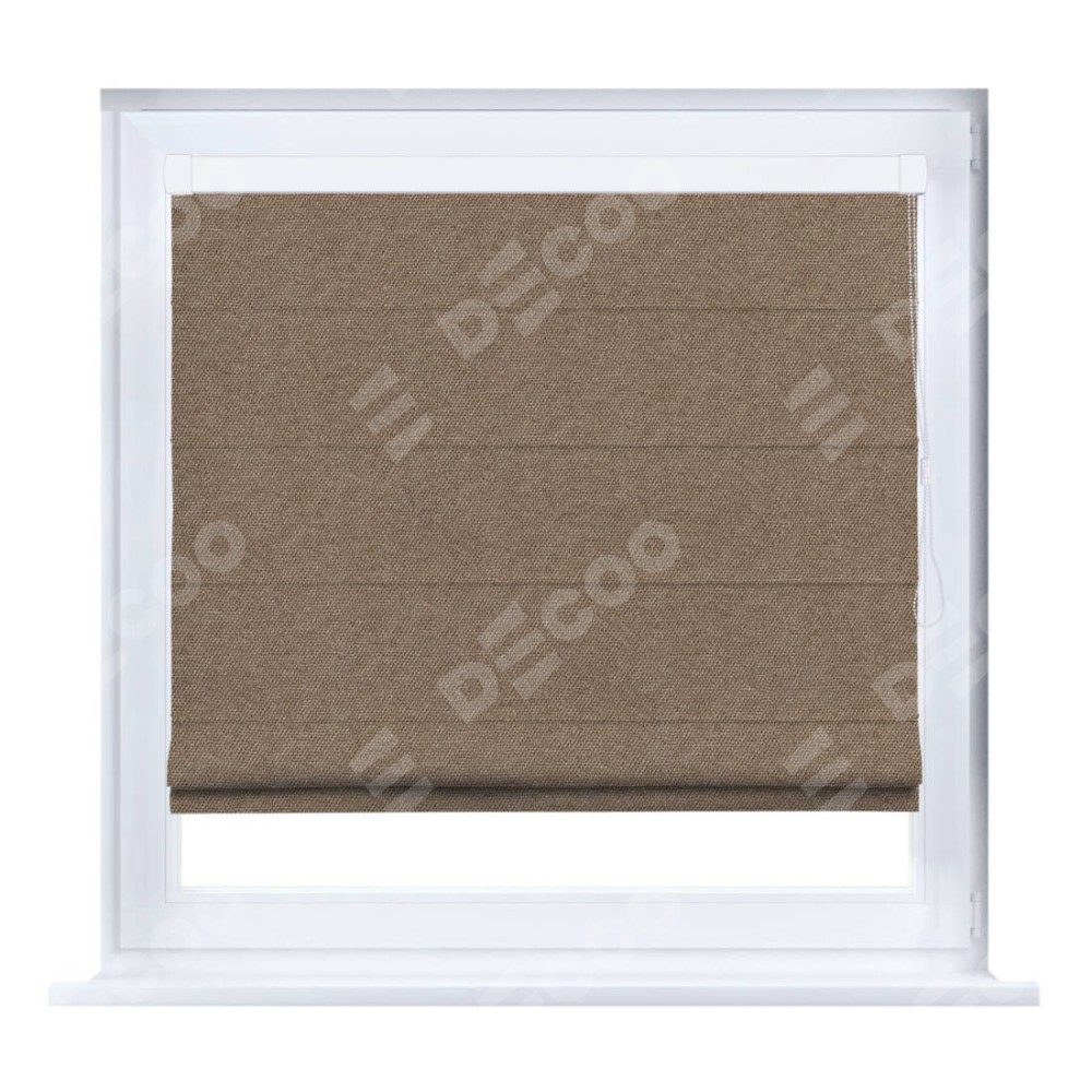 Римская штора производителя «Cortin», устанавливается на створку окна, пошита из ткани лён димаут коричневый, артикул 90996. Штора шьётся по индивидуальным размерам, для данного типа римской шторы возможная ширина от 35 до 150 см., высота до 250 см.