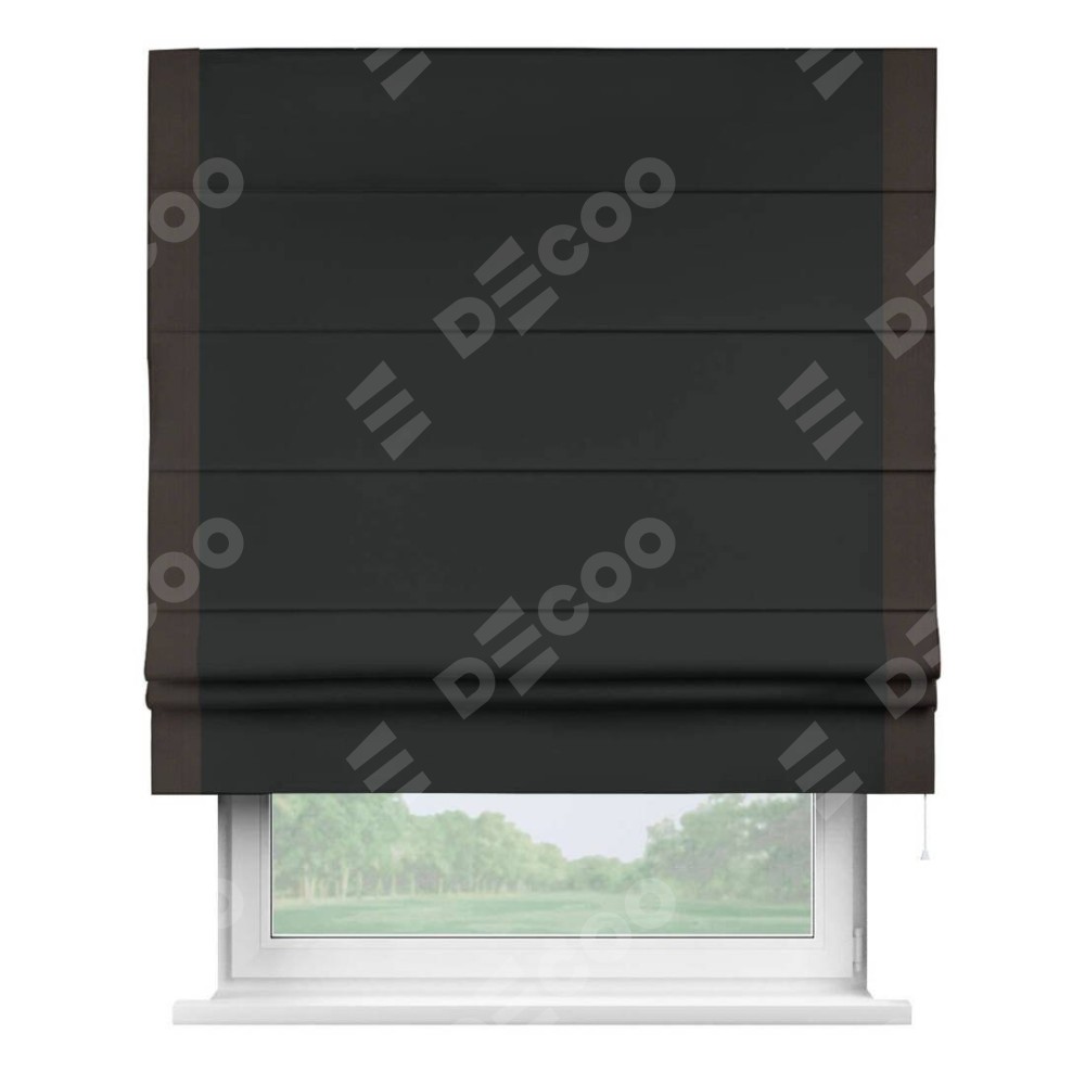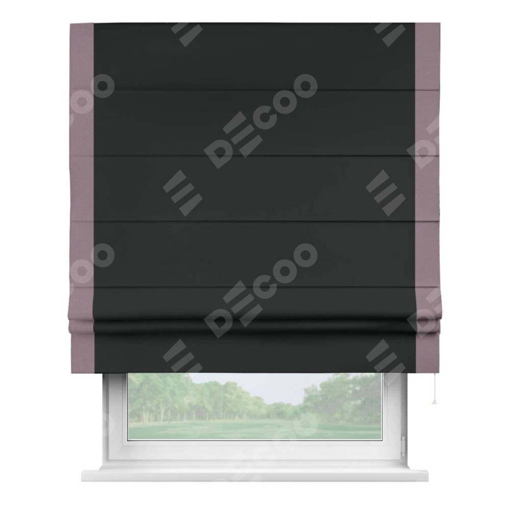 Римская штора «Кортин» для проема, блэкаут однотонный черный с кантом Стрим Дуо
