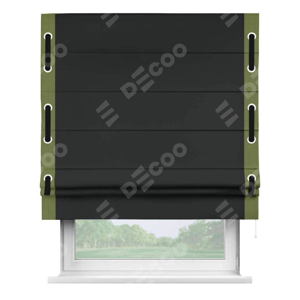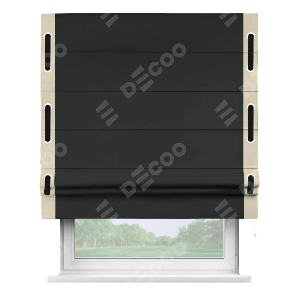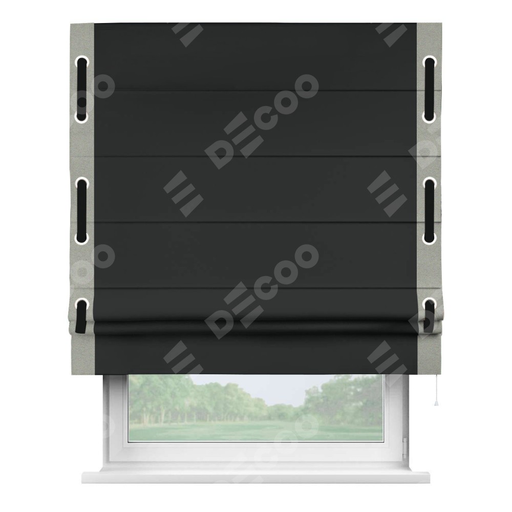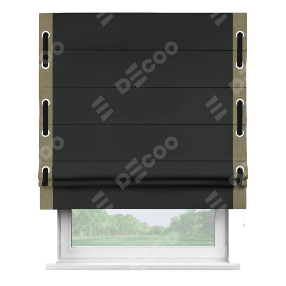 Римская штора «Кортин» для проема, блэкаут однотонный черный с кантом Стрим Дуо (люверсы с пояском)