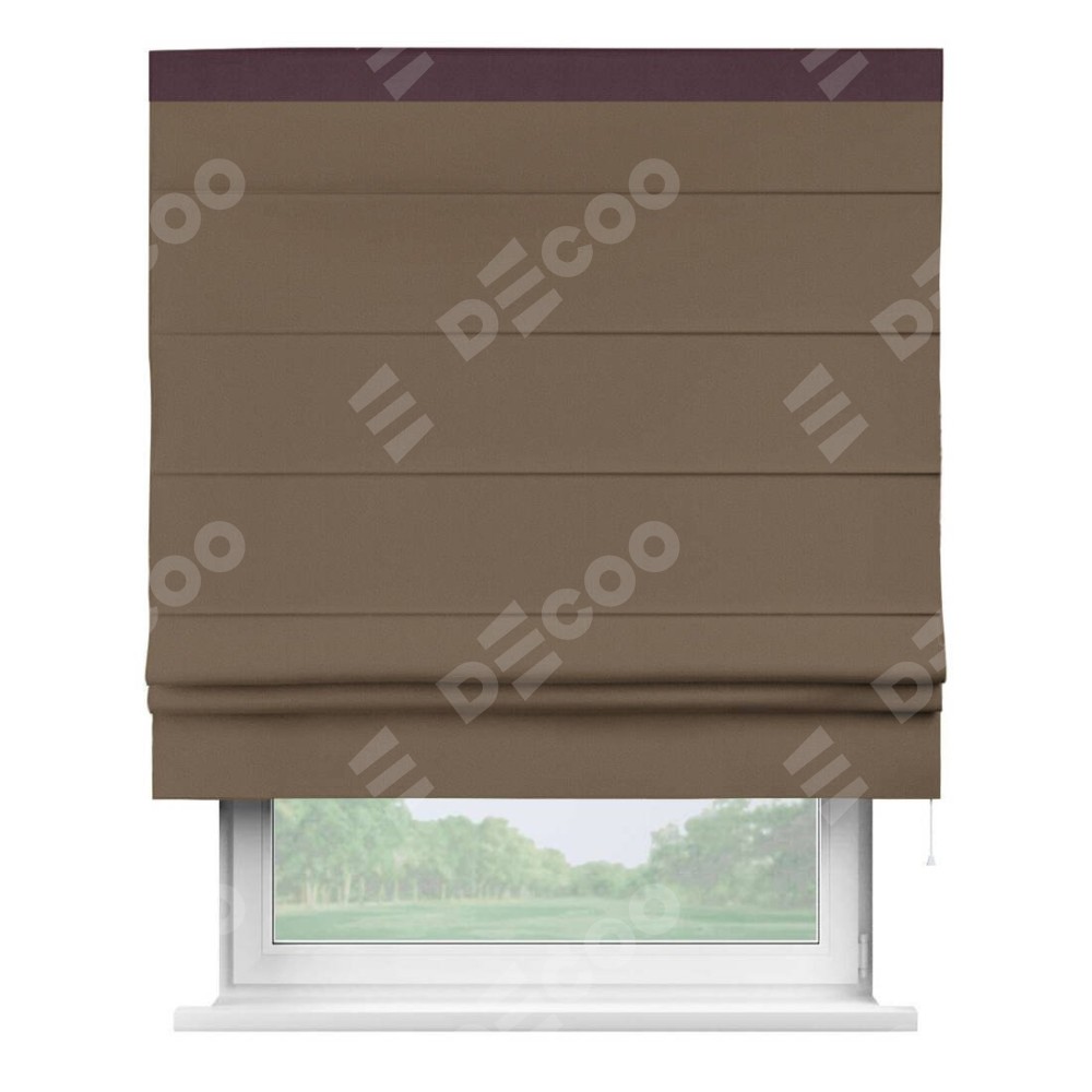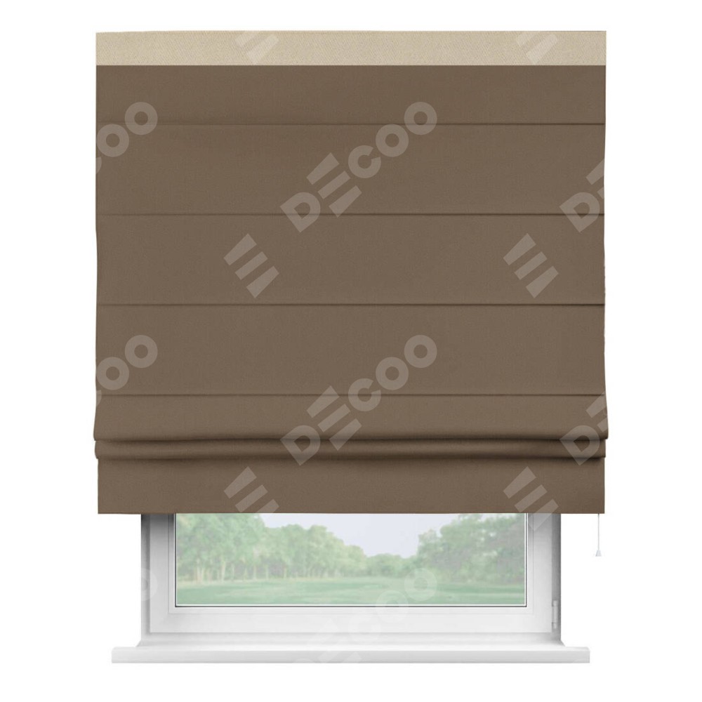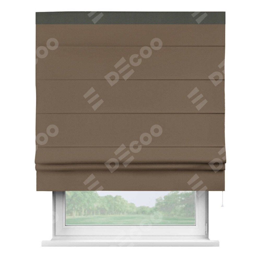 Римская штора «Кортин» для проема, блэкаут однотонный коричневый с кантом Кинг
