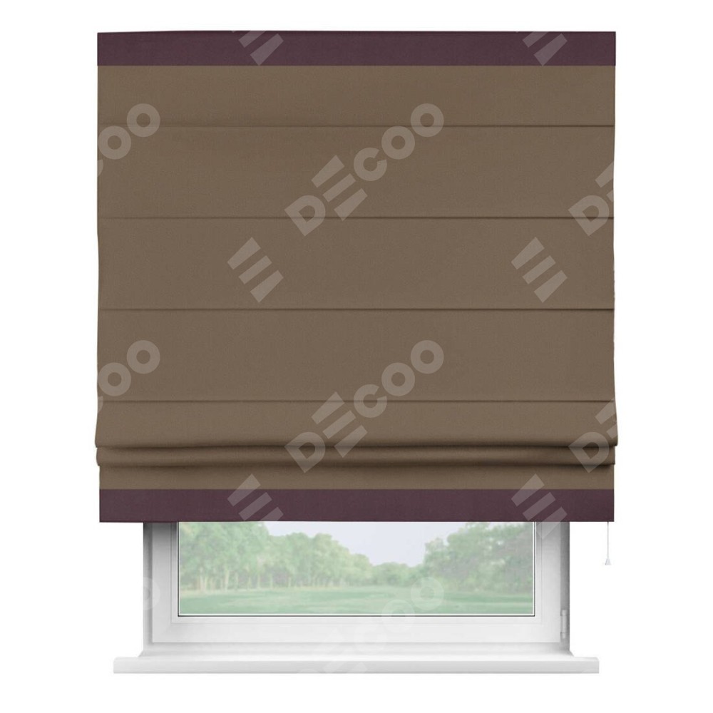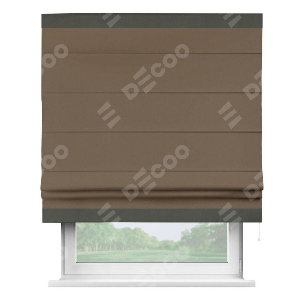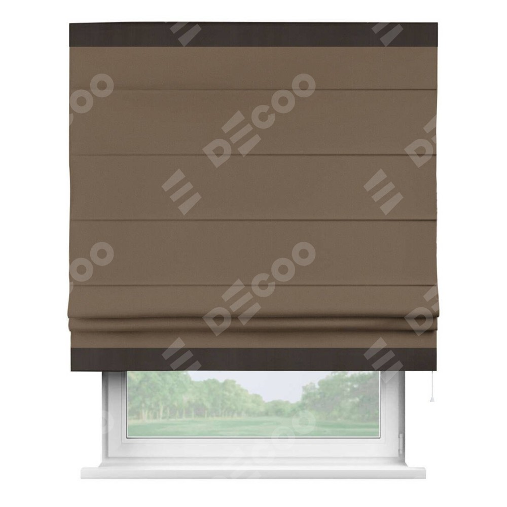 Римская штора «Кортин» для проема, блэкаут однотонный коричневый с кантом Горизонт