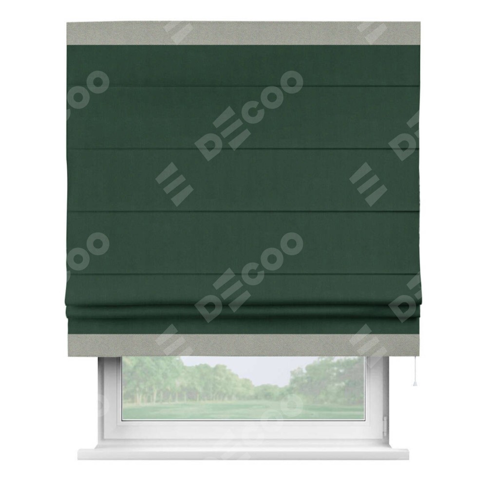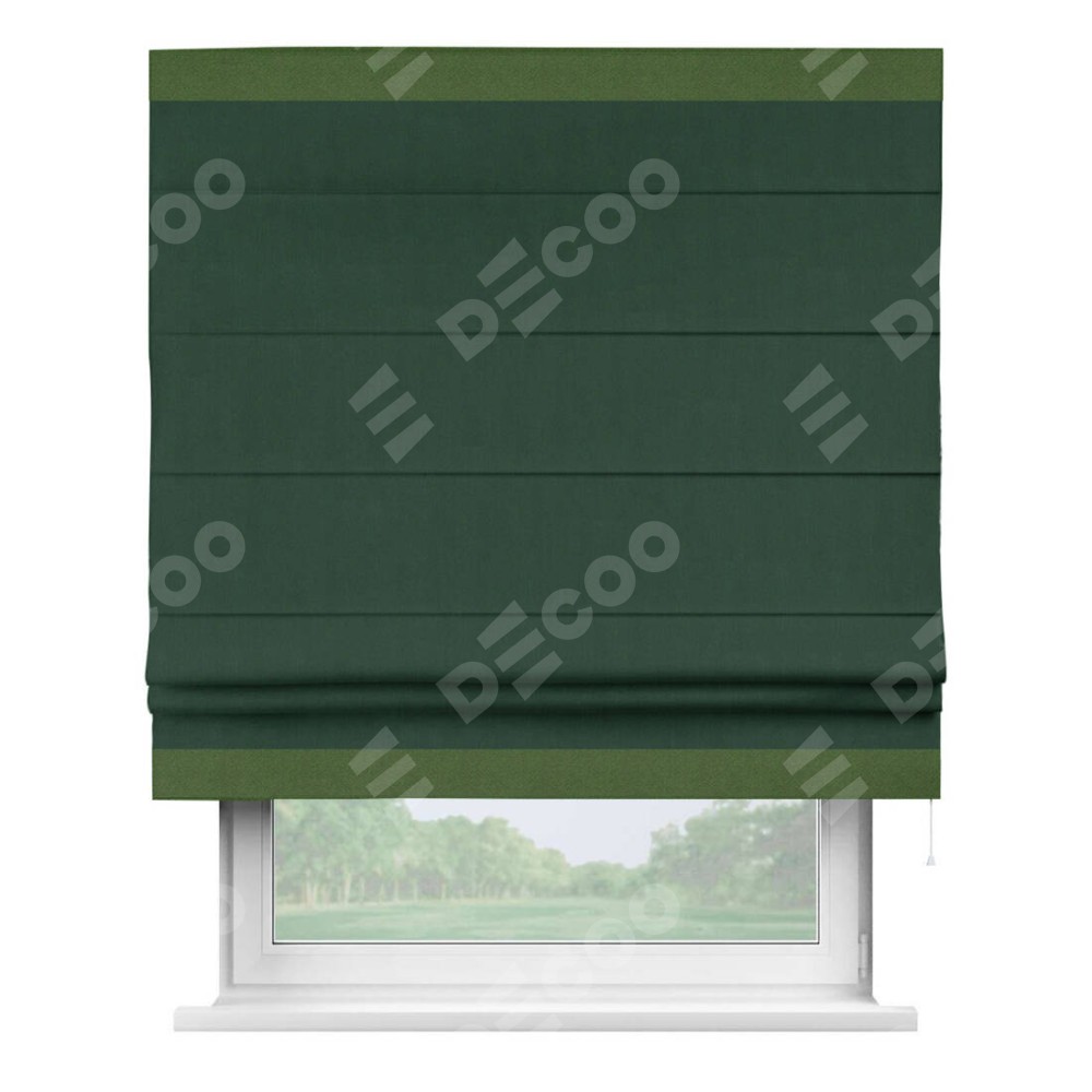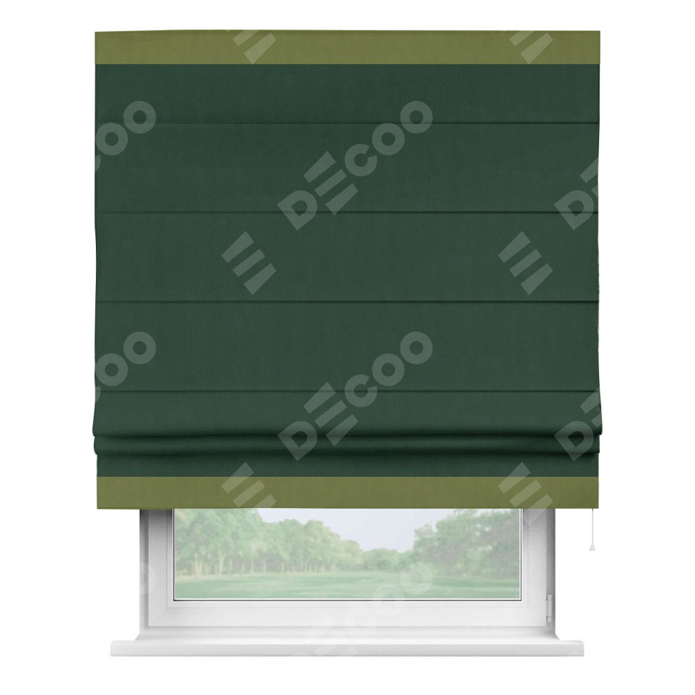 Римская штора «Кортин» для проема, блэкаут однотонный зелёный с кантом Горизонт