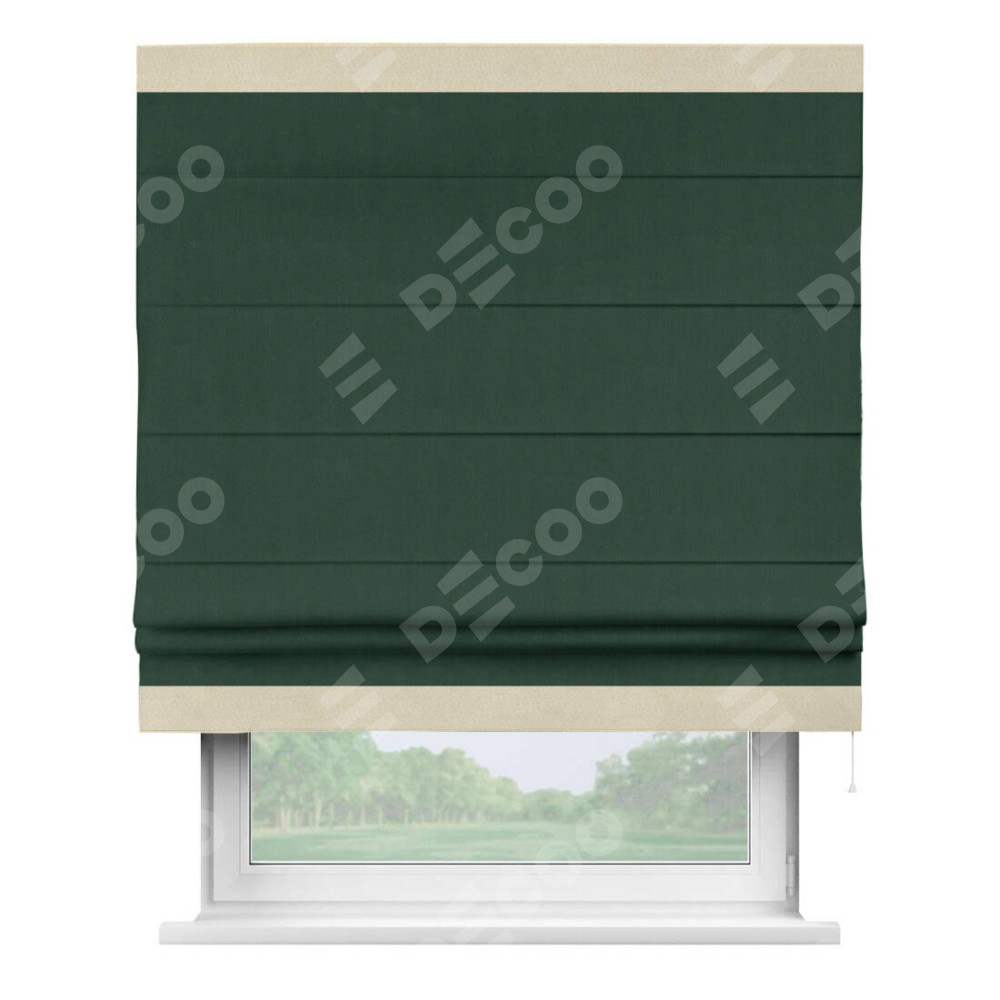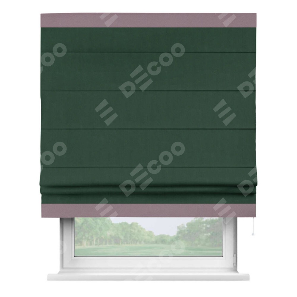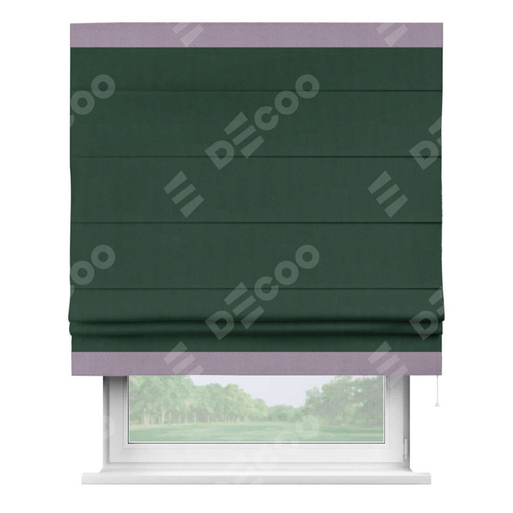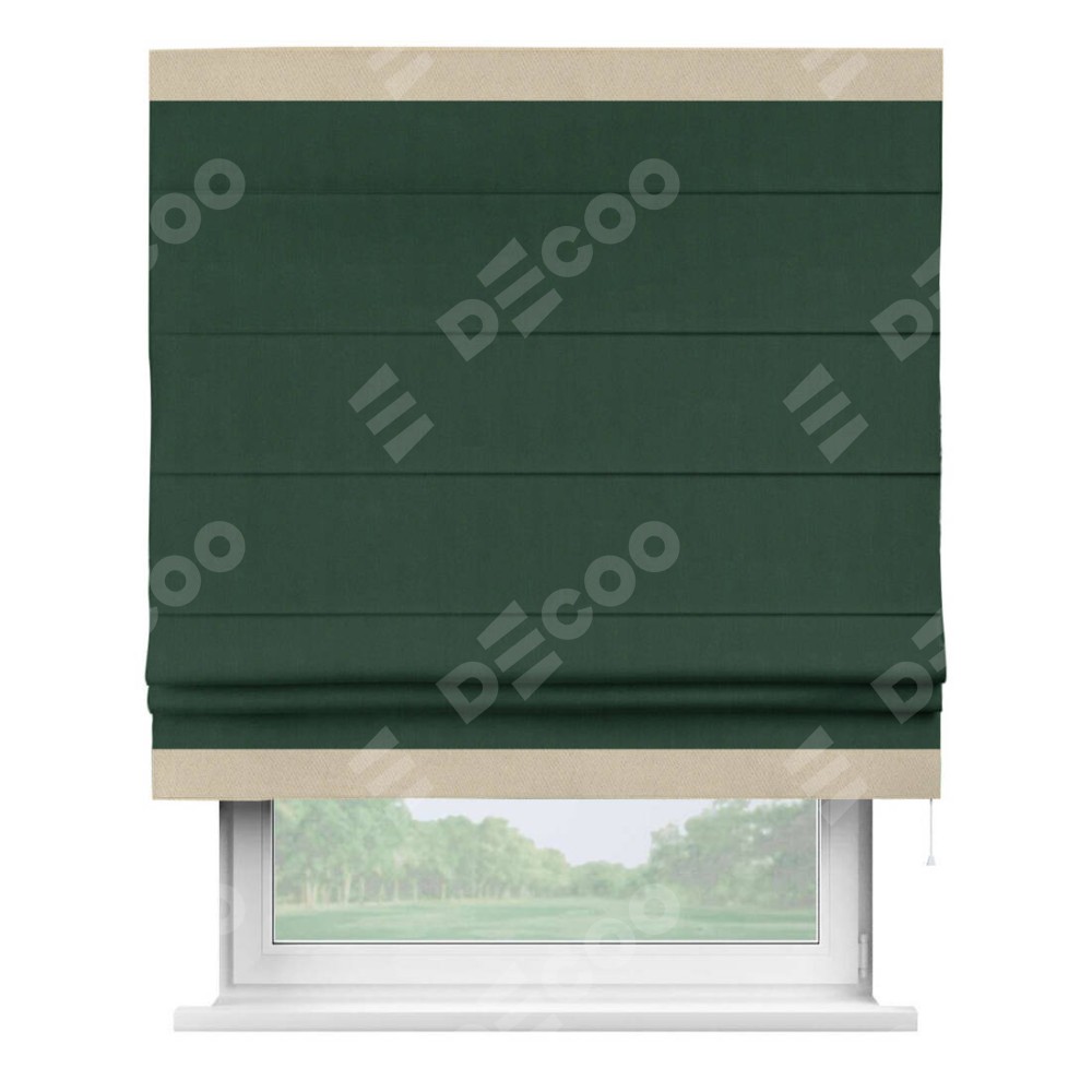 Римская штора «Кортин» для проема, блэкаут однотонный зелёный с кантом Горизонт