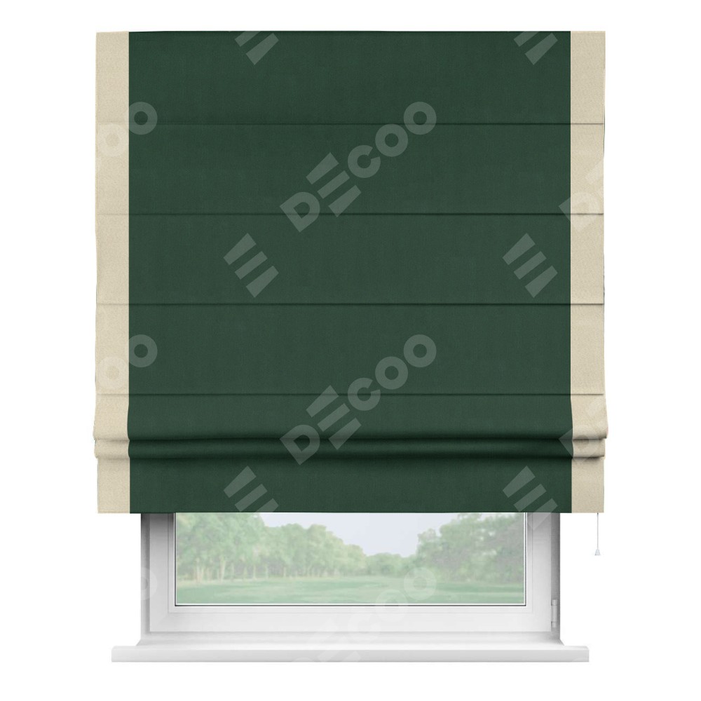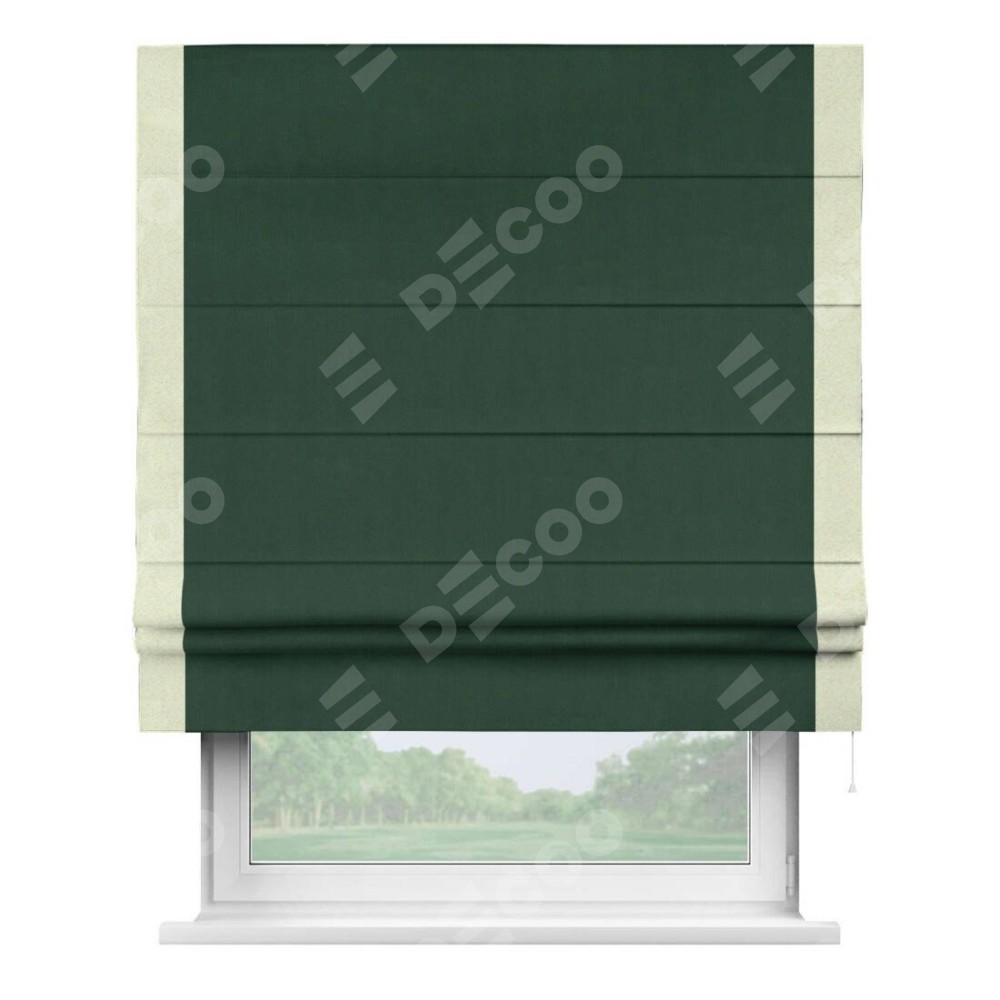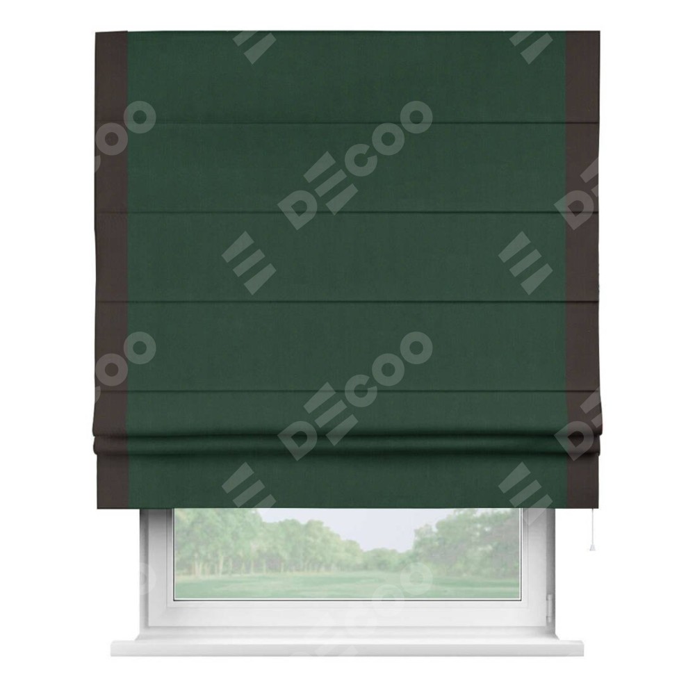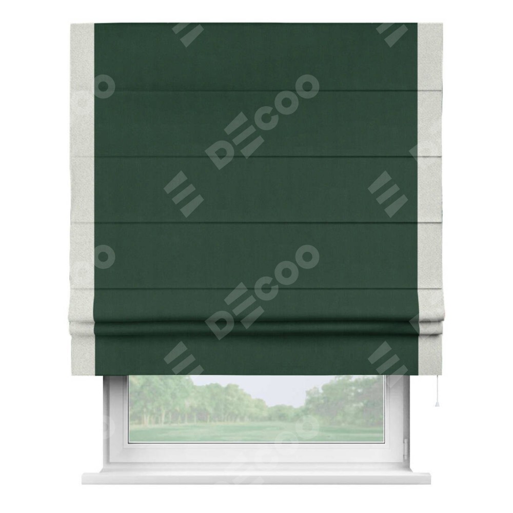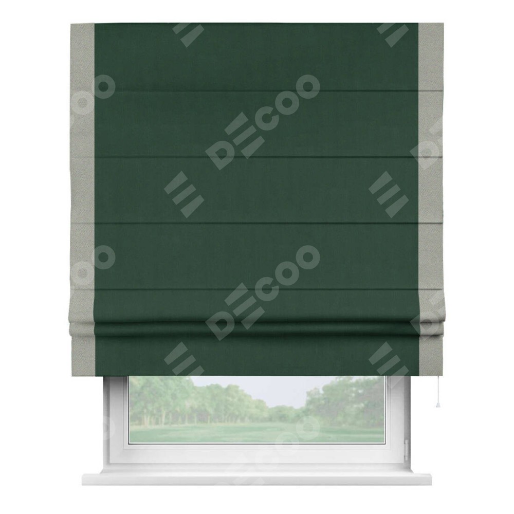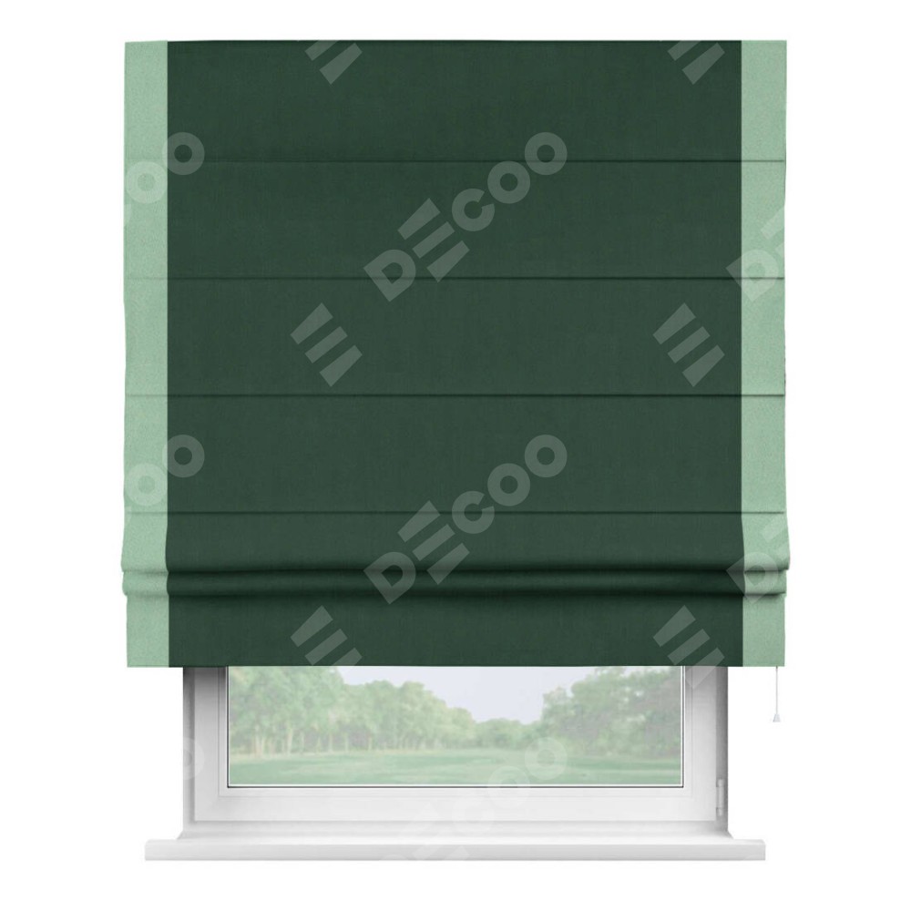 Римская штора «Кортин» для проема, блэкаут однотонный зелёный с кантом Стрим Дуо