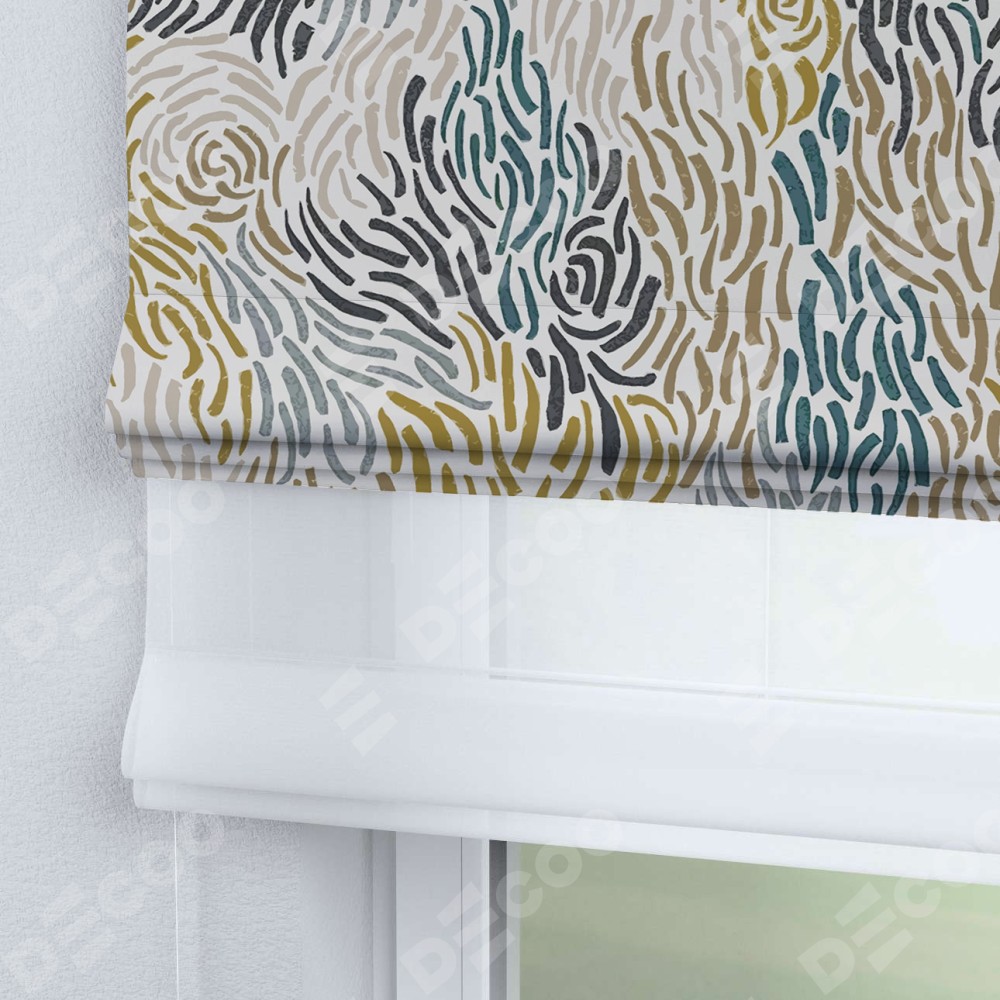 Двойная римская штора «День-ночь» от производителя Cortin предназначена для использования в проёмах. Эта штора уникальна тем, что состоит из двух полотен. На лицевой стороне находится блэкаут с нанесением сублимационной печати «Мистерия», обеспечивающий эффективное затемнение. В комплект также входит вторая ткань — легкий белый тюль (артикул: V-01), который добавляет изящества и легкости оформлению окна. Кроме того, доступны и другие разновидности ткани тюль, выбор которых доступен по ссылке .