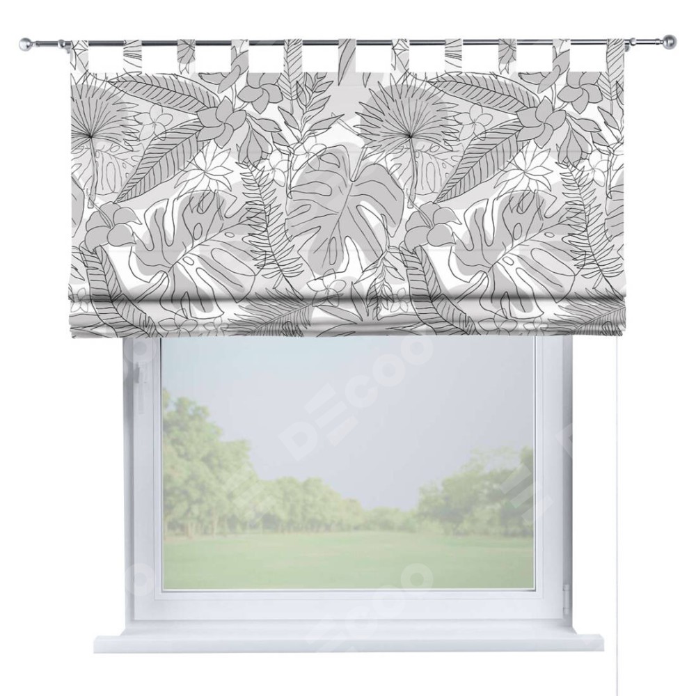 Римская штора производителя «Cortin», используется для проёма, пошита из ткани блэкаут с нанесением сублимационной печати «Тропический лес». Данная модель пошита на петлях, комплектуется на выбор круглым карнизом и подходит для монтажа на стену. Римская штора на петлях имеет простую систему регулировки высоты, отличительным преимуществом данной модели является простой способ монтажа. Достаточно повесить ее на трубу и штора готова!