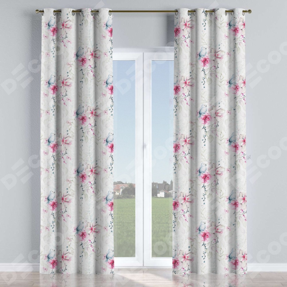 Комплект прямых штор, от производителя «Cortin», пошиты из ткани блэкаут с нанесением сублимационной печати «Мелодия цветов». Данная модель пошита на люверсах, комплектуется на выбор круглым карнизом и подходит для монтажа на стену или потолок. Прямые шторы на люверсах шьются по стандарту с коэффициентом 1/2 (на 100 см. ширины проёма 200 см. ширины ткани), отличительным преимуществом данной модели является простой способ монтажа. Достаточно повесить ее на трубу и штора готова!