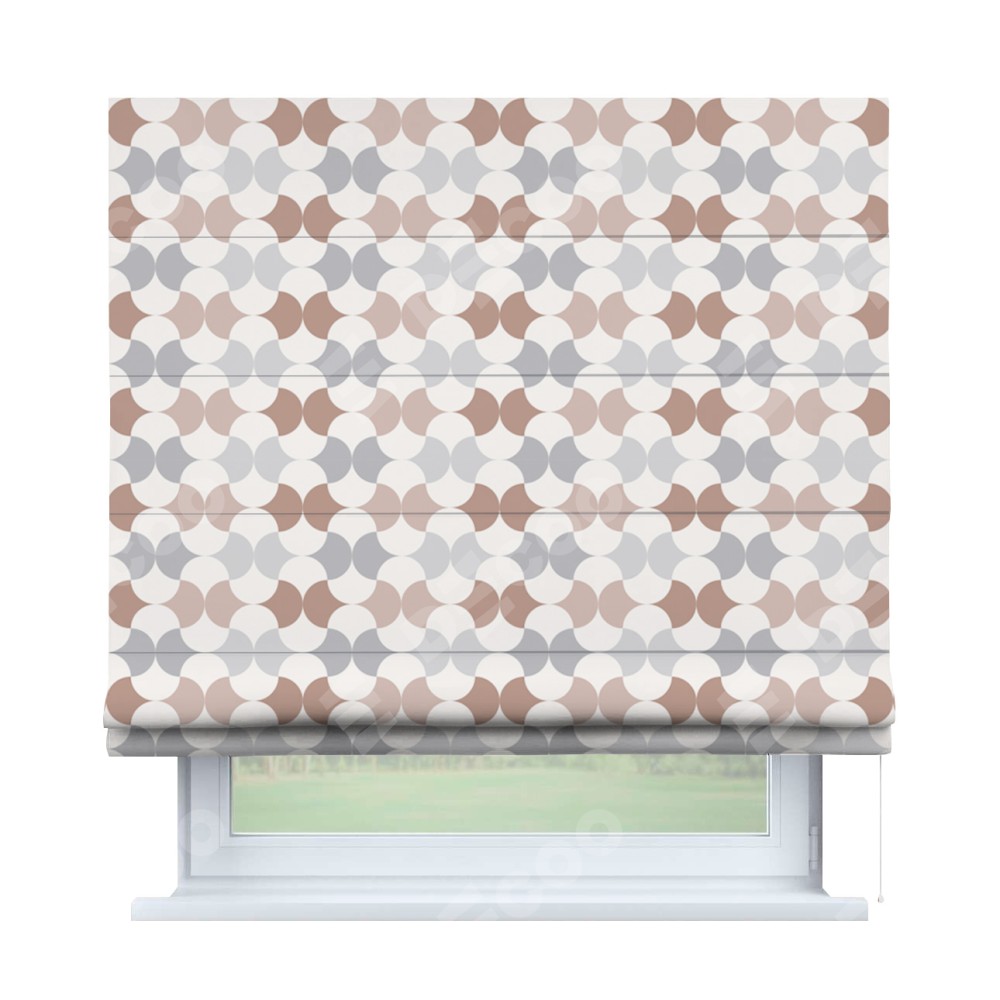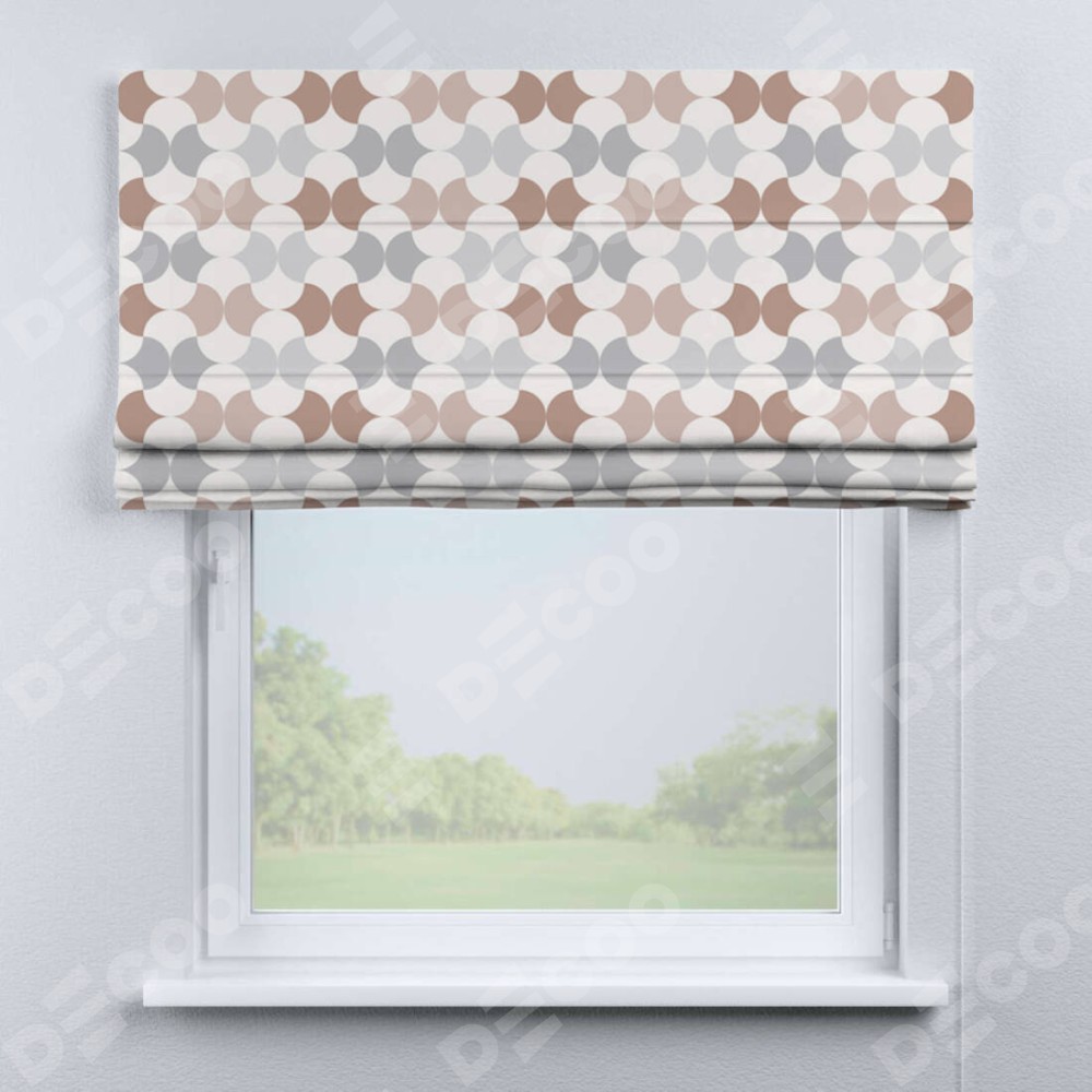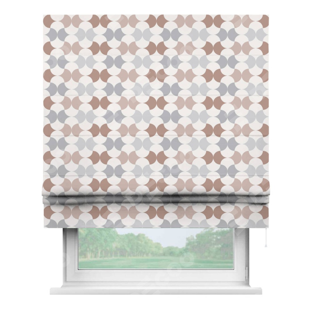 Классическая римская штора производителя «Cortin», пошита из ткани блэкаут с нанесением сублимационной печати «Модерн светлый». Имеет универсальный механизм и подходит для монтажа: на потолок, на стену и в нишу.