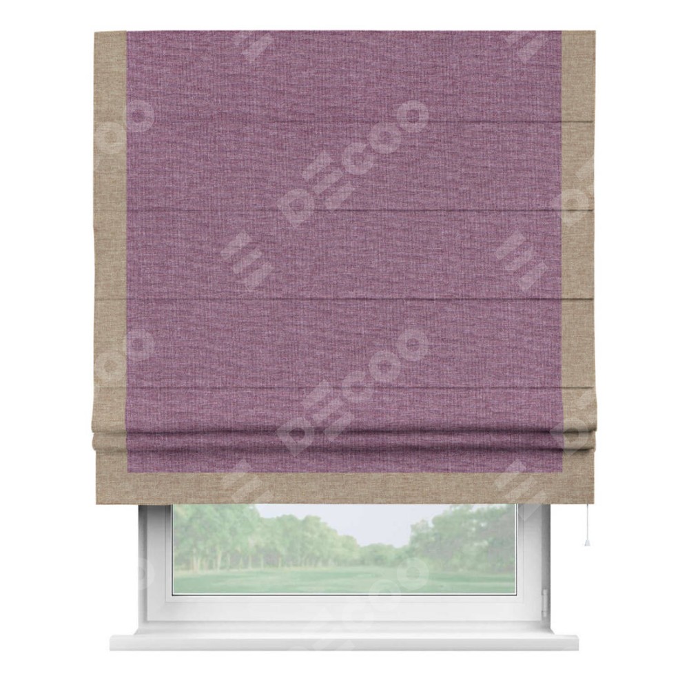 Римская штора «Кортин» с кантом Виктория, для проема, ткань лён кашемир сиреневый