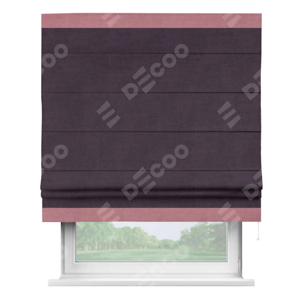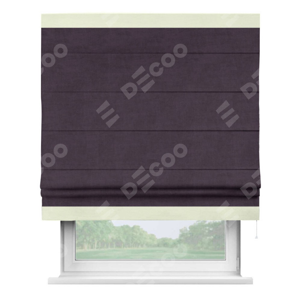 Римская штора «Кортин» для проема, вельвет тёмно-фиолетовый с кантом Горизонт
