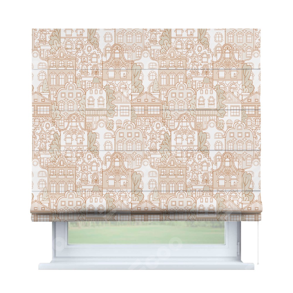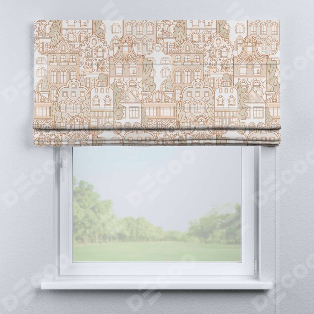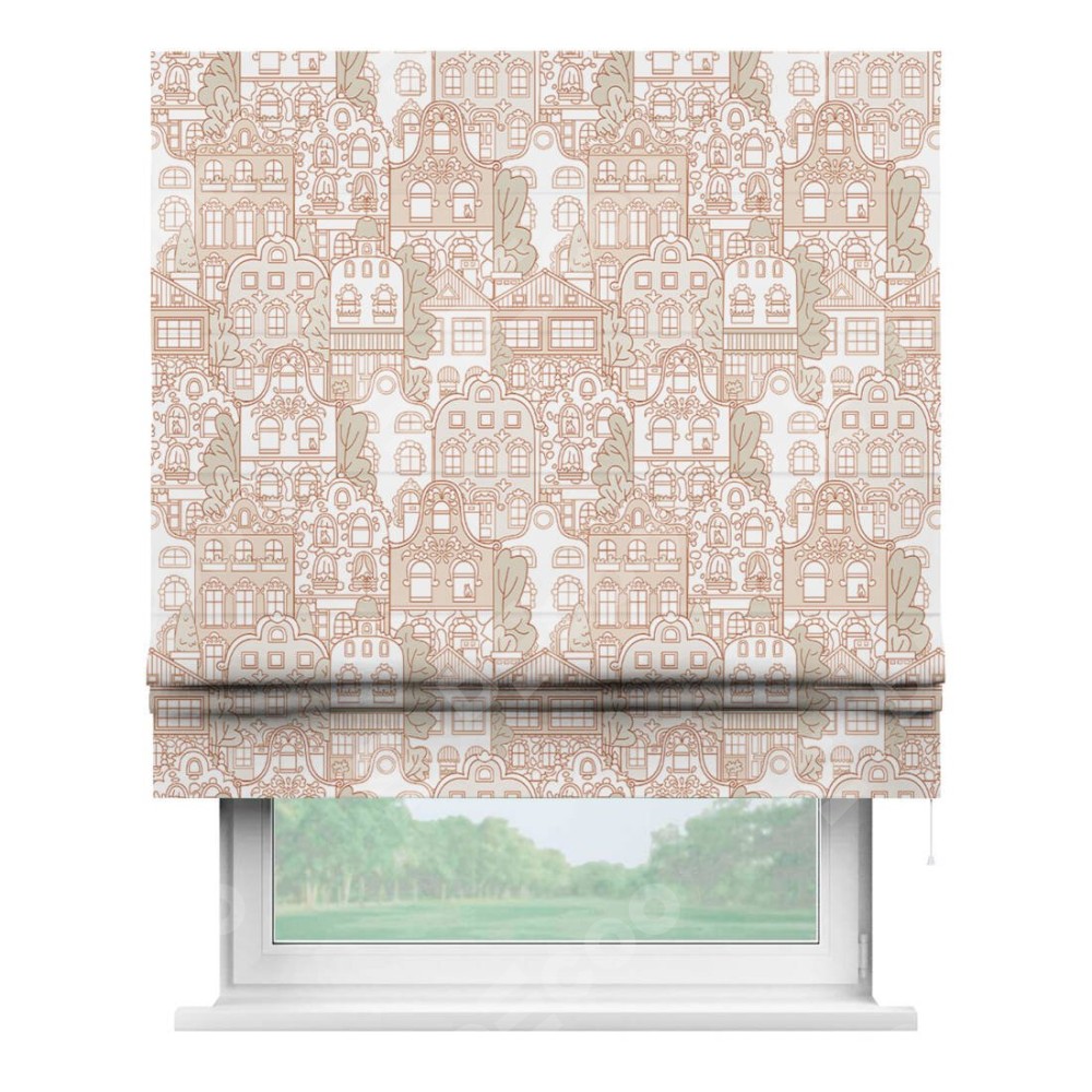 Классическая римская штора производителя «Cortin», пошита из ткани блэкаут с нанесением сублимационной печати «Милый городок». Имеет универсальный механизм и подходит для монтажа: на потолок, на стену и в нишу.
