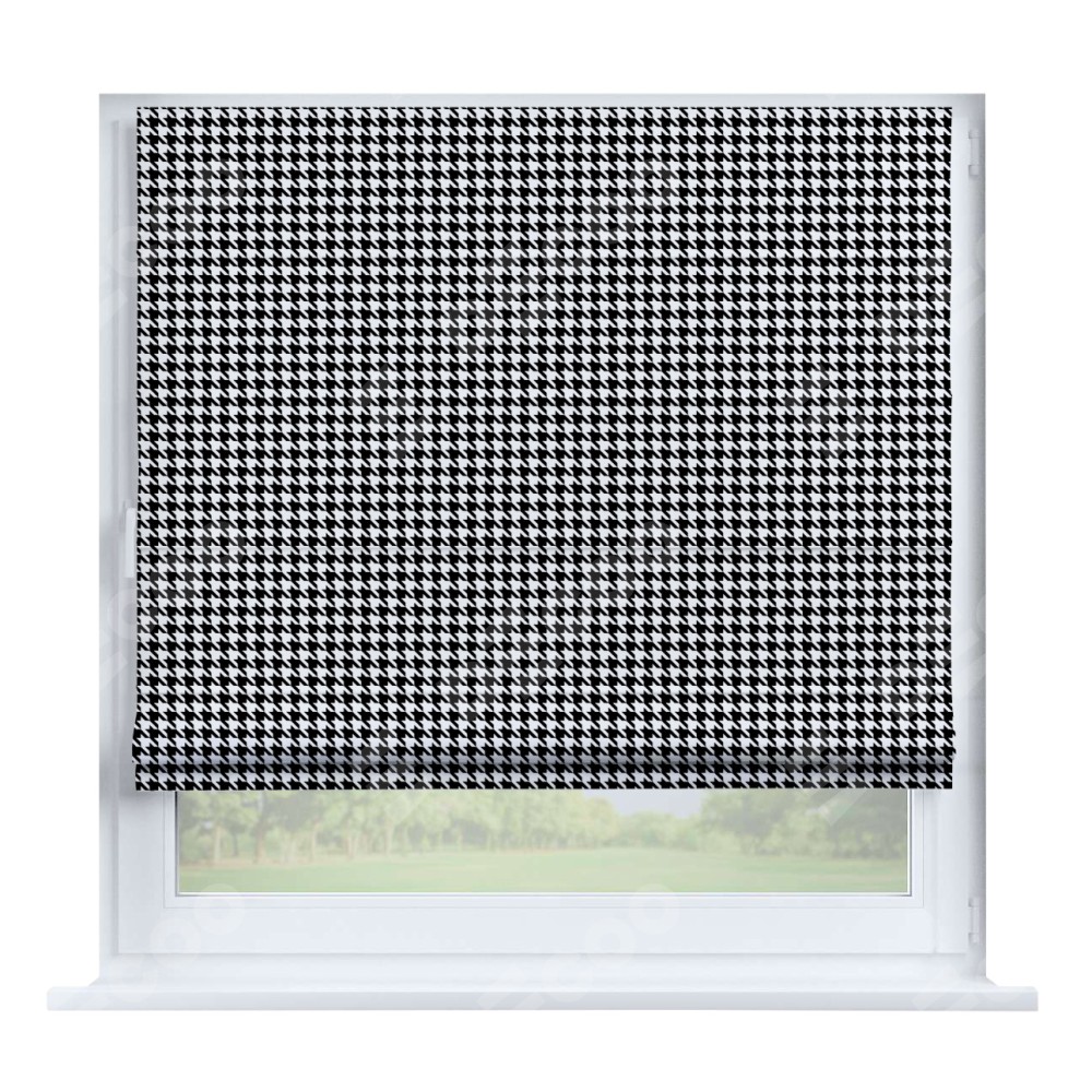 Римская штора производителя «Cortin», устанавливается на створку окна, пошита из ткани блэкаут с нанесением сублимационной печати «Гусиные лапки» черно-белый». Штора шьётся по индивидуальным размерам, для данного типа римской шторы возможная ширина от 35 до 150 см., высота до 250 см.
