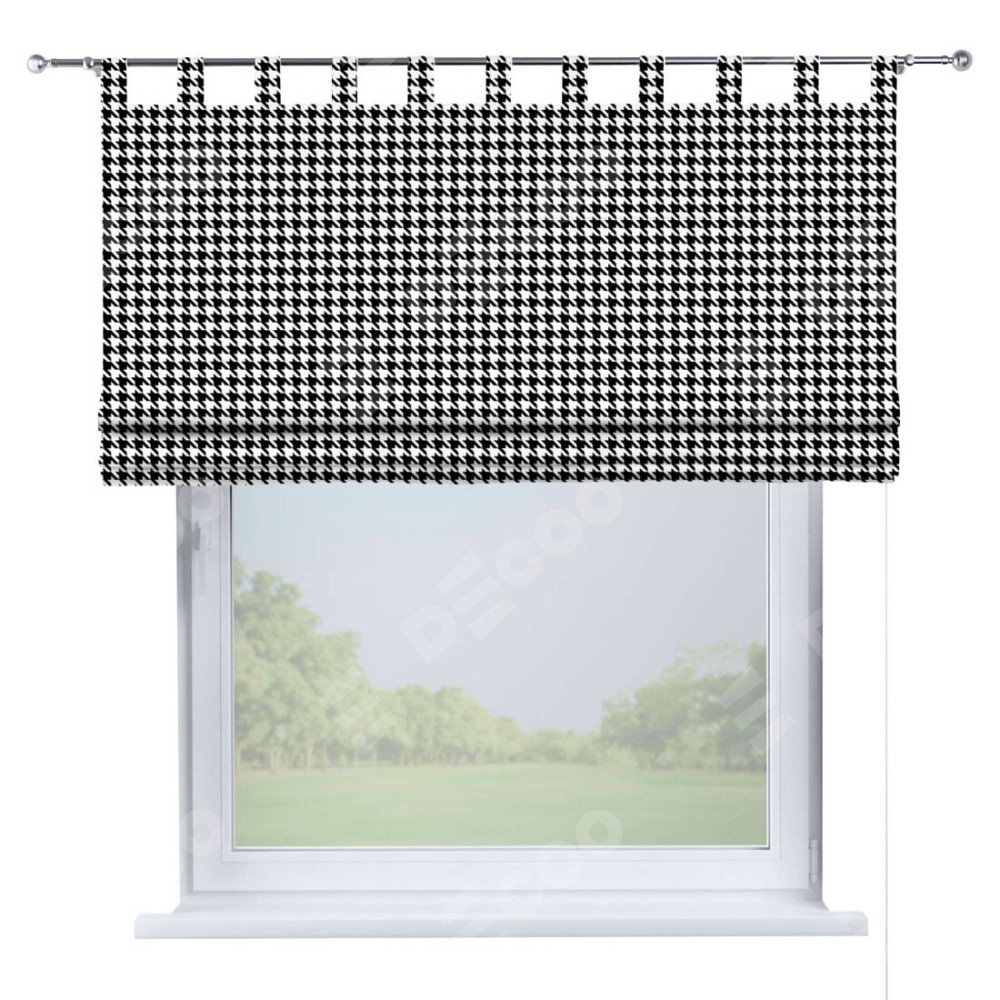 Римская штора производителя «Cortin», используется для проёма, пошита из ткани блэкаут с нанесением сублимационной печати «Гусиные лапки» черно-белый». Данная модель пошита на петлях, комплектуется на выбор круглым карнизом и подходит для монтажа на стену. Римская штора на петлях имеет простую систему регулировки высоты, отличительным преимуществом данной модели является простой способ монтажа. Достаточно повесить ее на трубу и штора готова!