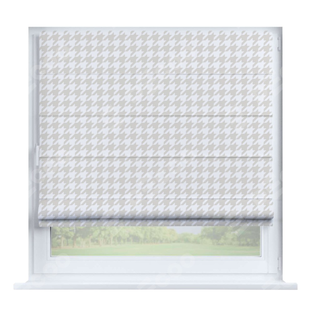 Римская штора производителя «Cortin», устанавливается на створку окна, пошита из ткани блэкаут с нанесением сублимационной печати «Гусиные лапки» молочный». Штора шьётся по индивидуальным размерам, для данного типа римской шторы возможная ширина от 35 до 150 см., высота до 250 см.