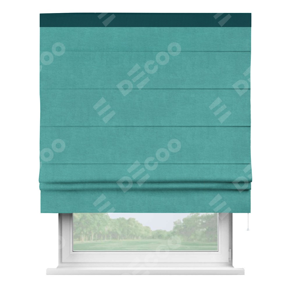 Римская штора «Кортин» для проема, канвас бирюзовый, с кантом Кинг