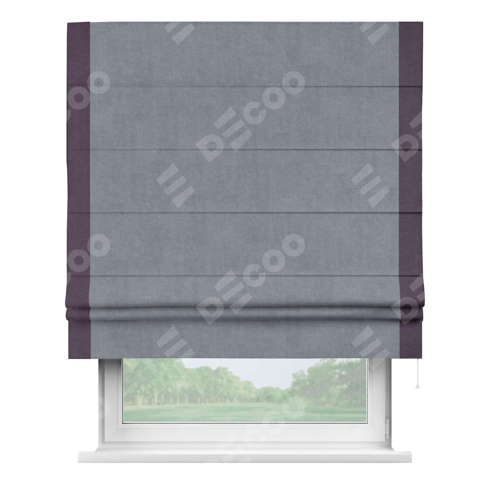 Римская штора «Кортин» для проема, канвас васильковый, с кантом Стрим Дуо