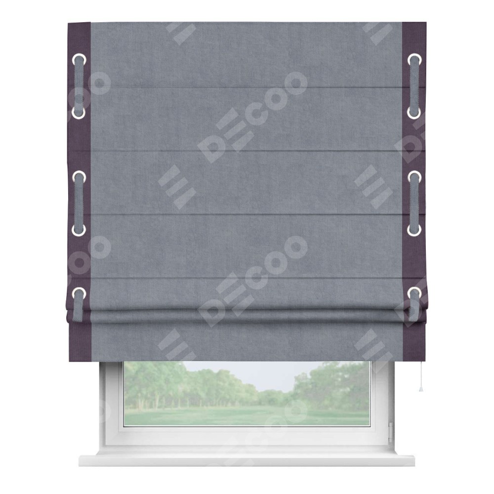 Римская штора «Кортин» для проема, канвас васильковый, с кантом Стрим Дуо (люверсы с пояском)