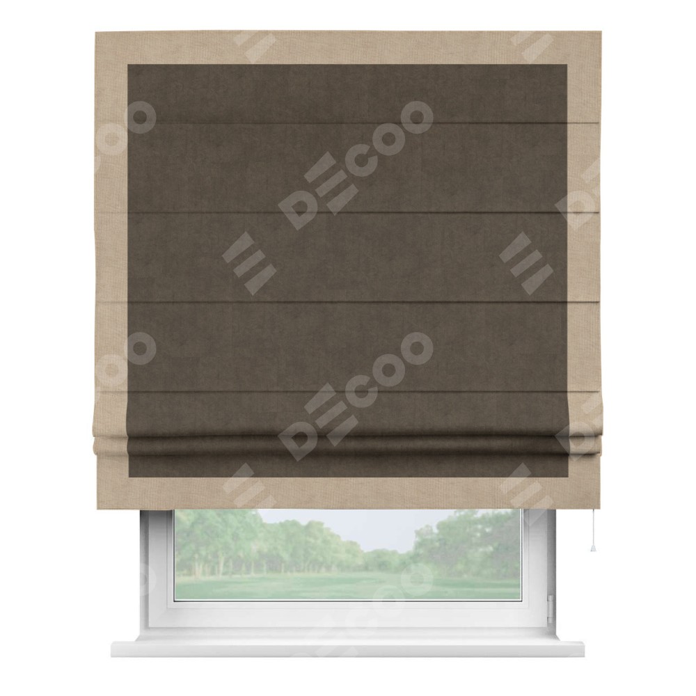 Римская штора «Кортин» для проема, канвас коричневый, с кантом Чесс