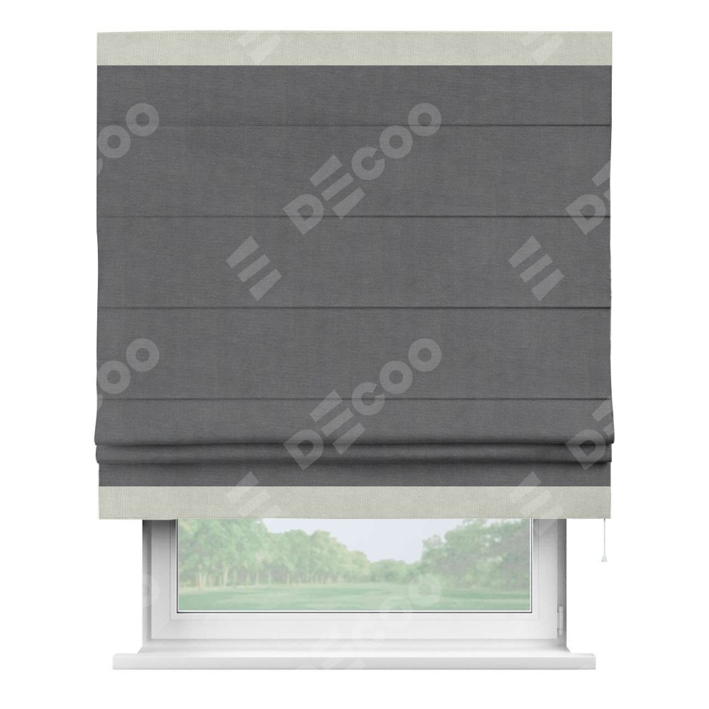 Римская штора «Кортин» для проема, канвас мокрый асфальт, с кантом Горизонт