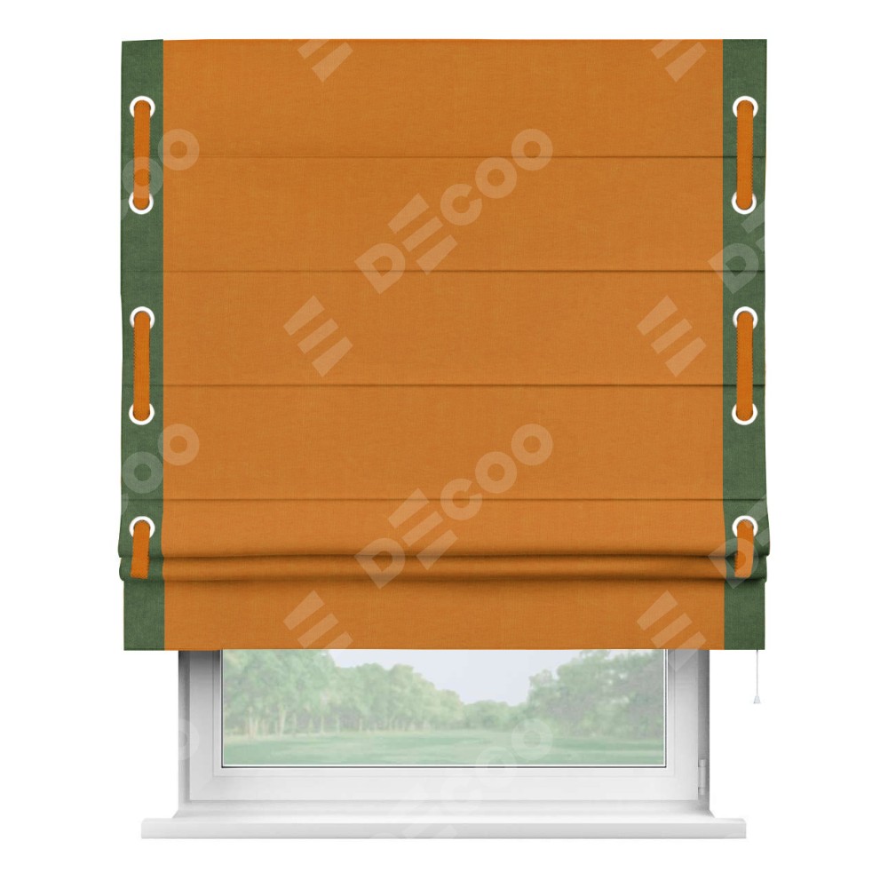 Римская штора «Кортин» для проема, канвас оранжевый, с кантом Стрим Дуо (люверсы с пояском)