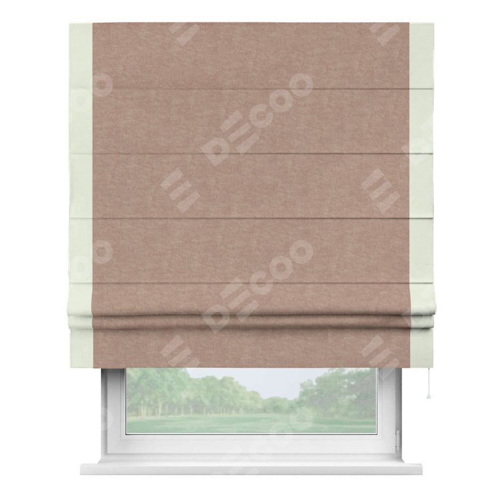 Римская штора «Кортин» для проема, канвас розовая пудра, с кантом Стрим Дуо