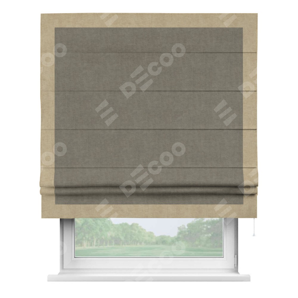 Римская штора «Кортин» для проема, канвас серо-бежевый, с кантом Чесс