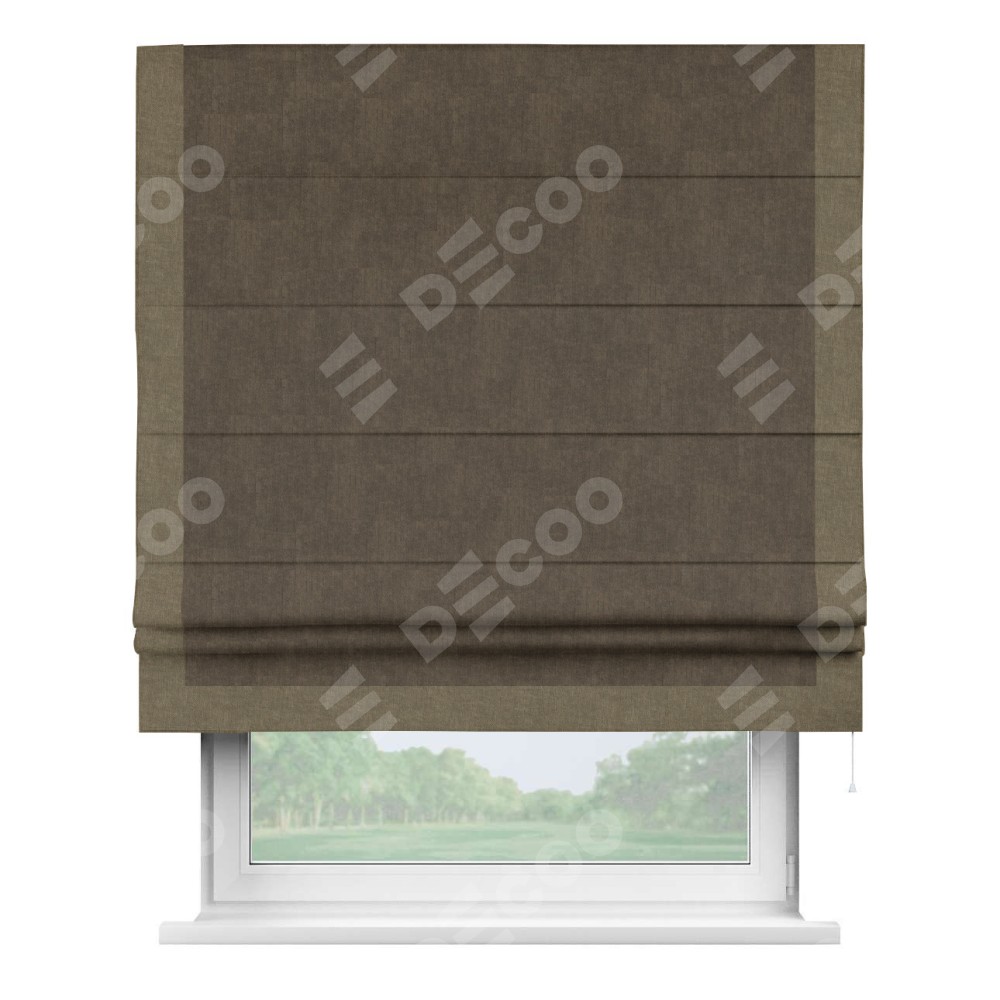 Римская штора «Кортин» для проема, канвас шоколадный, с кантом Виктория
