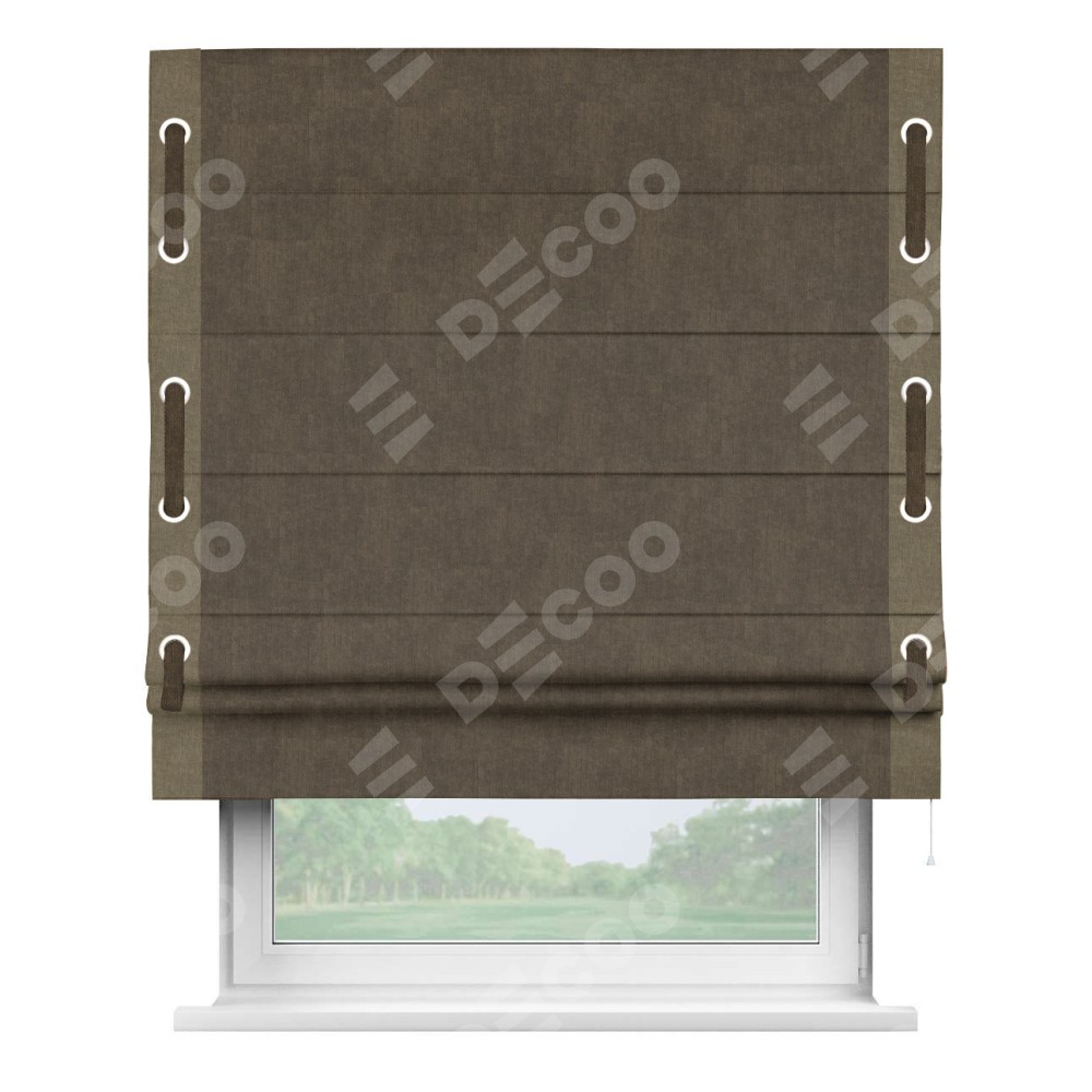 Римская штора «Кортин» для проема, канвас шоколадный, с кантом Стрим Дуо (люверсы с пояском)