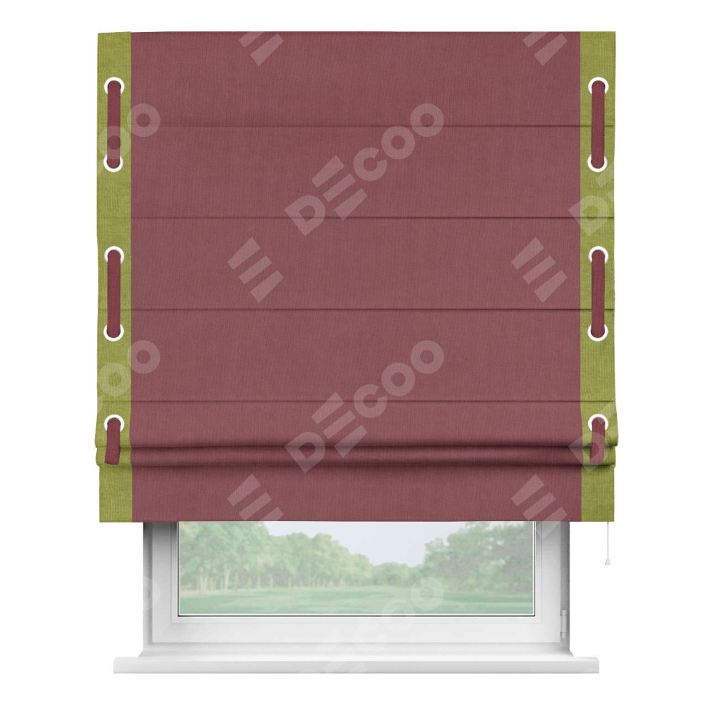 Римская штора «Кортин» для проема, канвас ягодный, с кантом Стрим Дуо (люверсы с пояском)