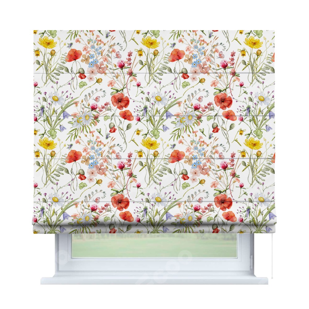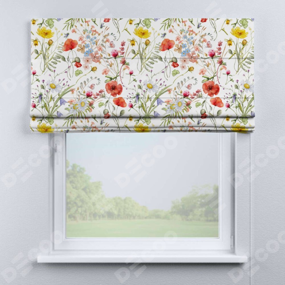 Классическая римская штора производителя «Cortin», пошита из ткани блэкаут с нанесением сублимационной печати «Полевые маки». Имеет универсальный механизм и подходит для монтажа: на потолок, на стену и в нишу.