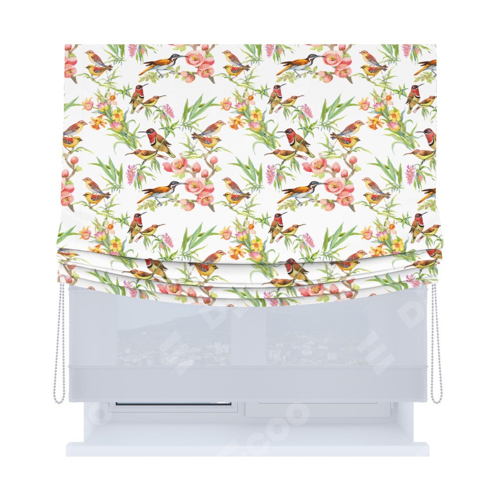 Римская штора «Кортин», день-ночь с мягкими складками, «Певчие птички»