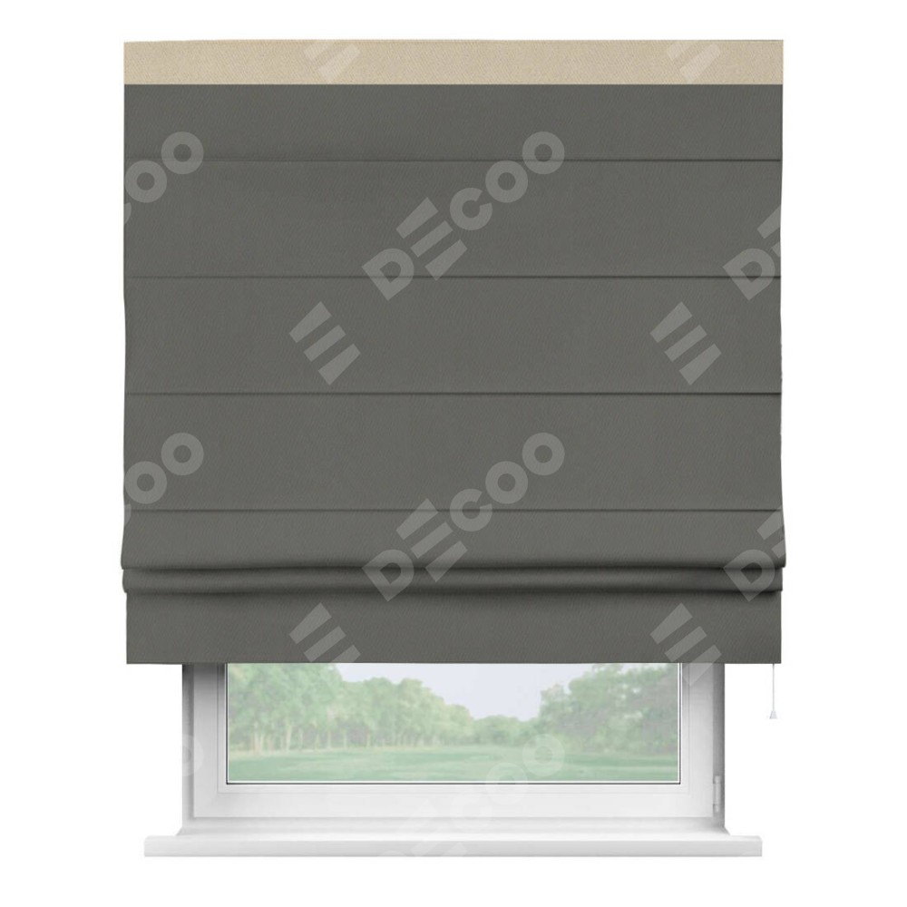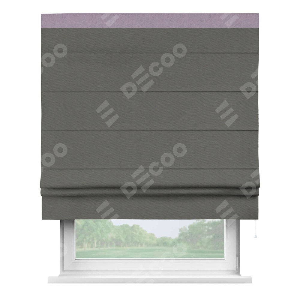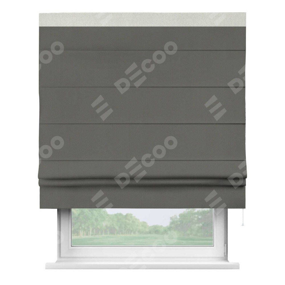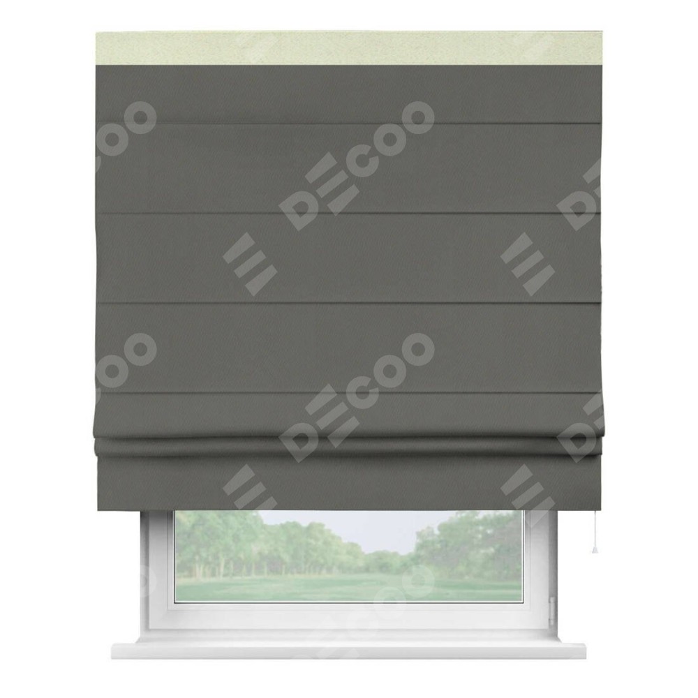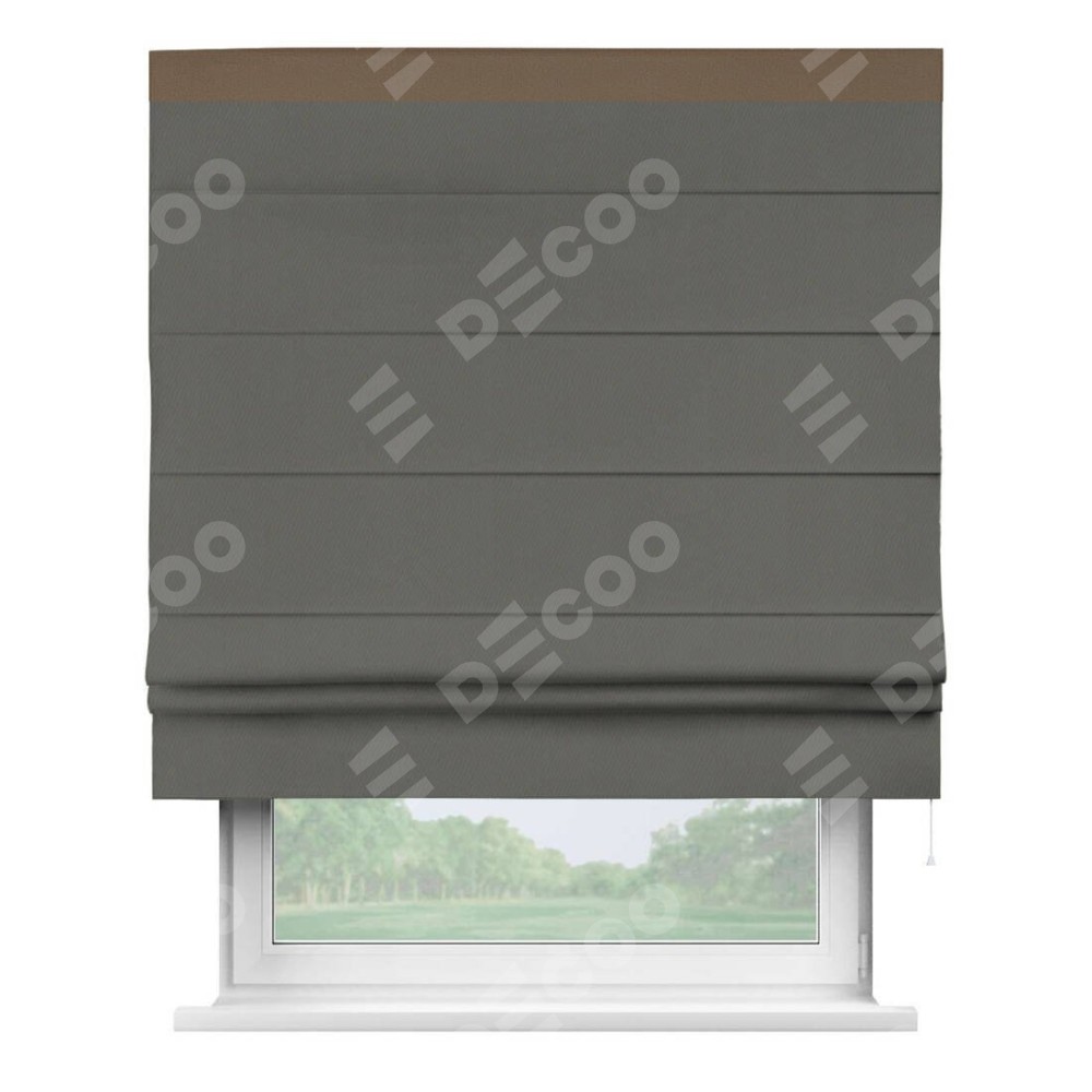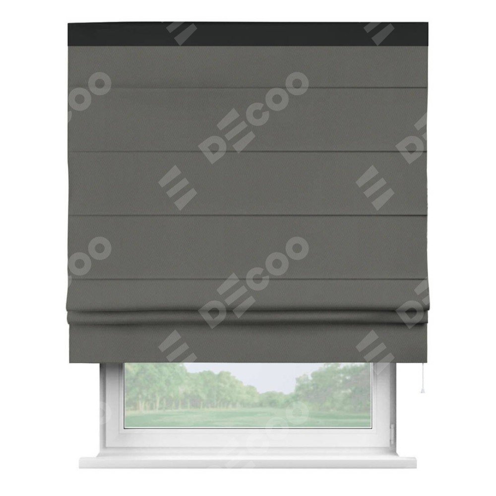 Римская штора «Кортин» для проема, блэкаут однотонный тёмно-серый с кантом Кинг