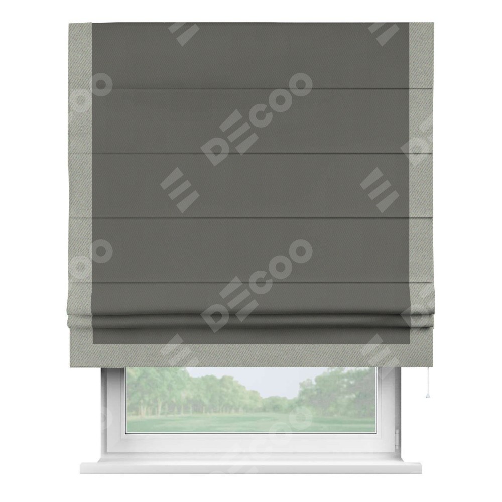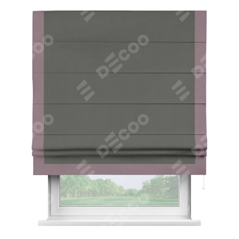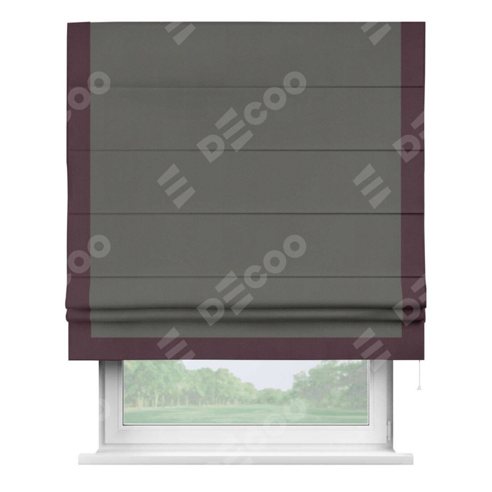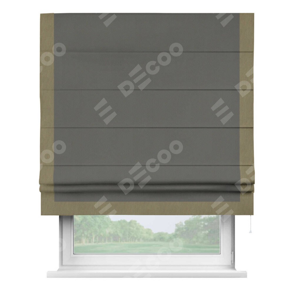 Римская штора «Кортин» для проема, блэкаут однотонный тёмно-серый с кантом Виктория