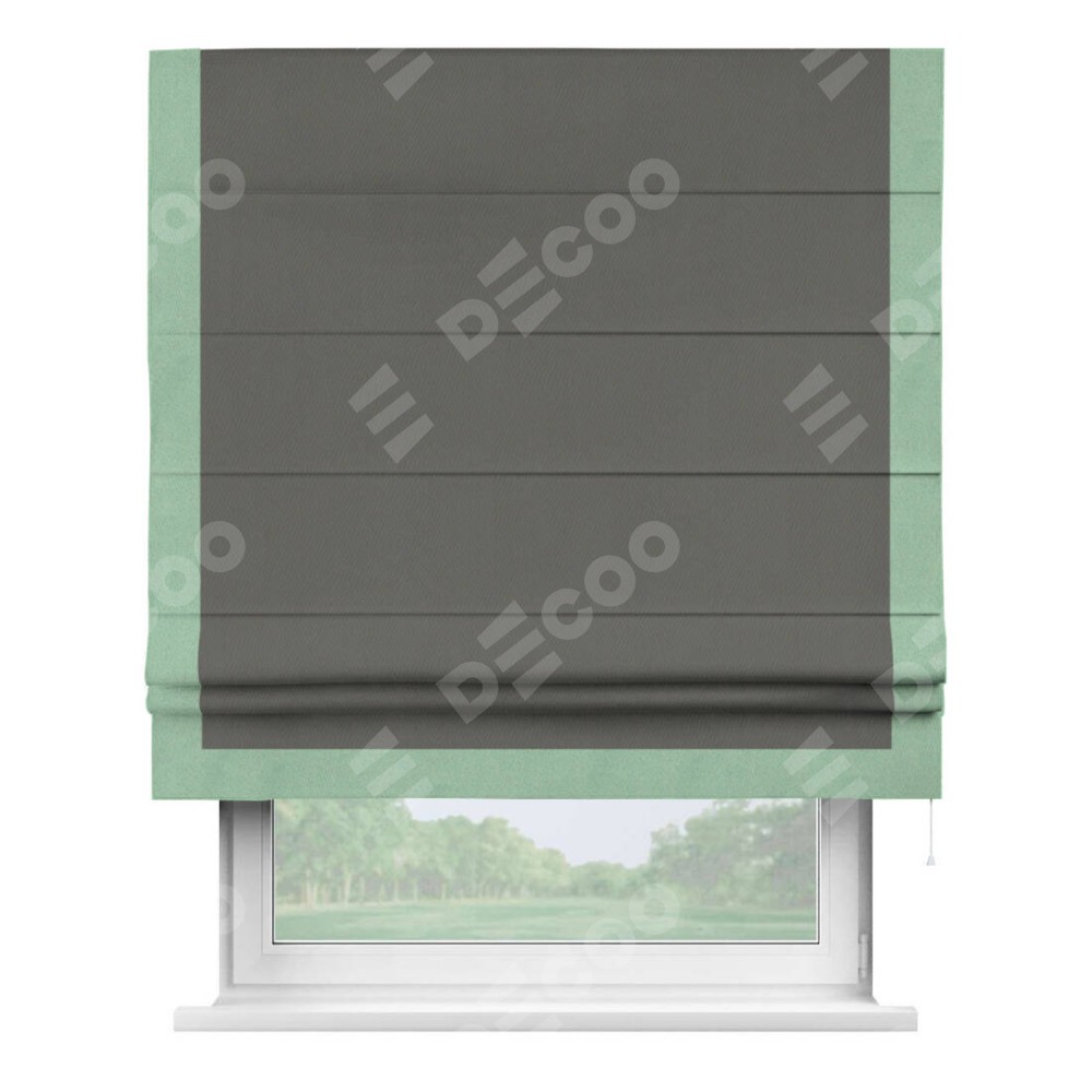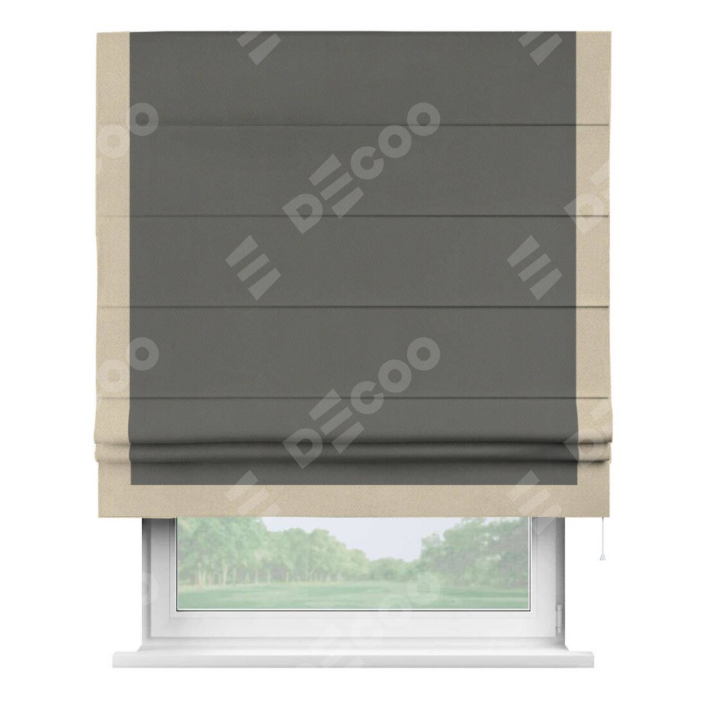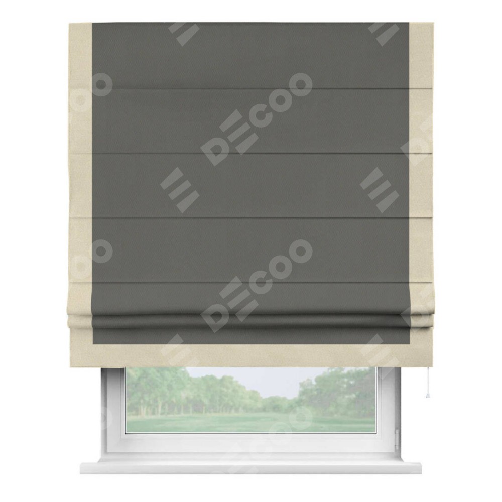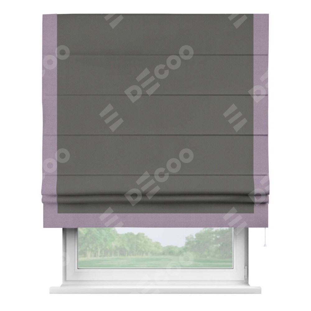 Римская штора «Кортин» для проема, блэкаут однотонный тёмно-серый с кантом Виктория