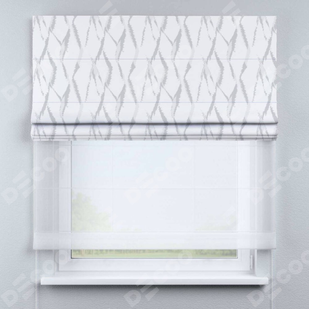 Одно из ключевых преимуществ двойной римской шторы «День-ночь» — это её функциональность. При поднятии основной шторы проём не оголяется благодаря наличию второй ткани из тюля. Это создает дополнительный уровень уюта и комфорта в помещении. Кроме того, доступен выбор из различных видов тканей тюля, позволяющий настроить штору в соответствии с индивидуальными предпочтениями.
