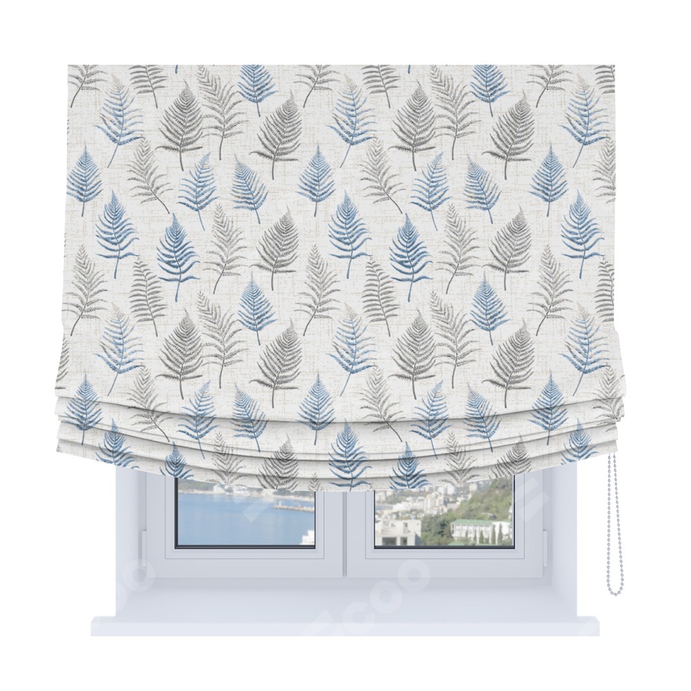 Римская штора Soft производителя «Cortin», используется для проёма, пошита из ткани блэкаут с нанесением сублимационной печати «Королевский папоротник». Имеет универсальный механизм и подходит для монтажа: на потолок, на стену и в нишу. В отличие от стандартных римских штор, римская штора Soft не имеет горизонтальных вставок и нижнего отвеса. Это позволяет ткани произвольно драпироваться в свободные мягкие складки.