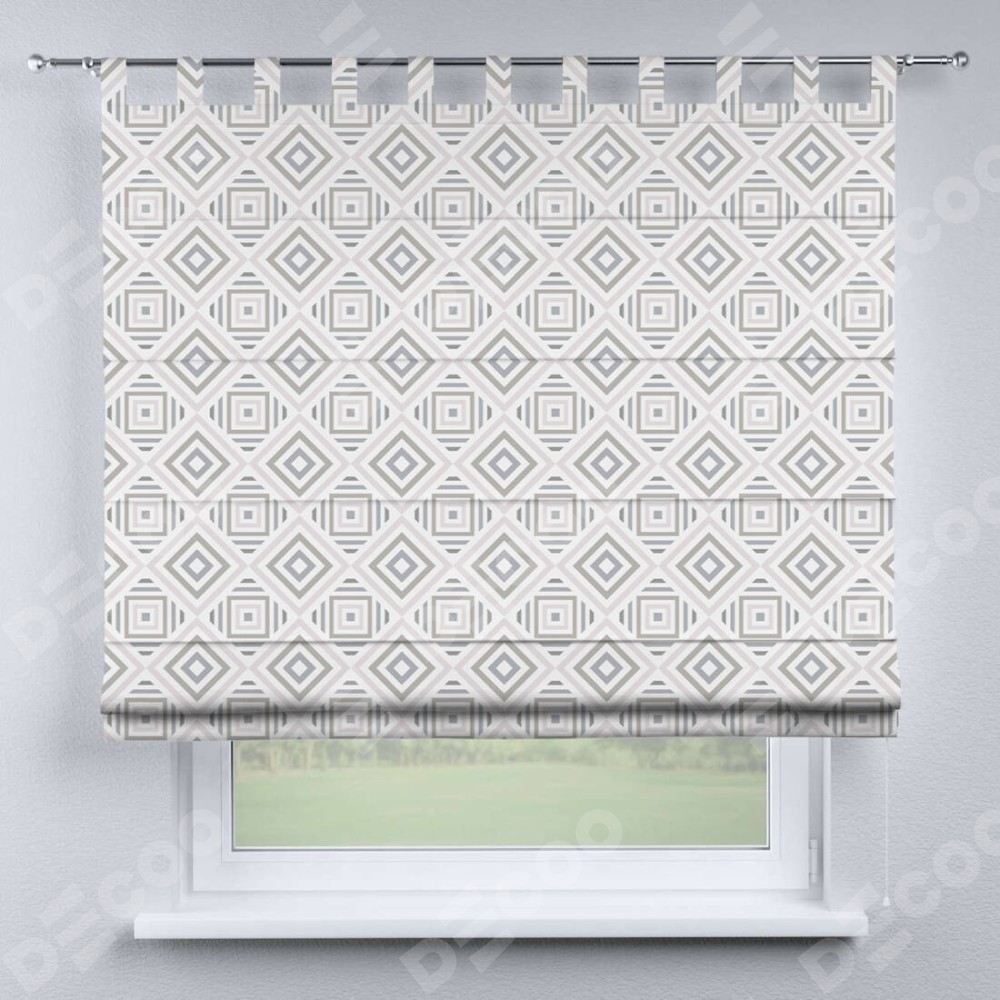 Римская штора производителя «Cortin», используется для проёма, пошита из ткани блэкаут с нанесением сублимационной печати «Техно серый». Данная модель пошита на петлях, комплектуется на выбор круглым карнизом и подходит для монтажа на стену. Римская штора на петлях имеет простую систему регулировки высоты, отличительным преимуществом данной модели является простой способ монтажа. Достаточно повесить ее на трубу и штора готова!