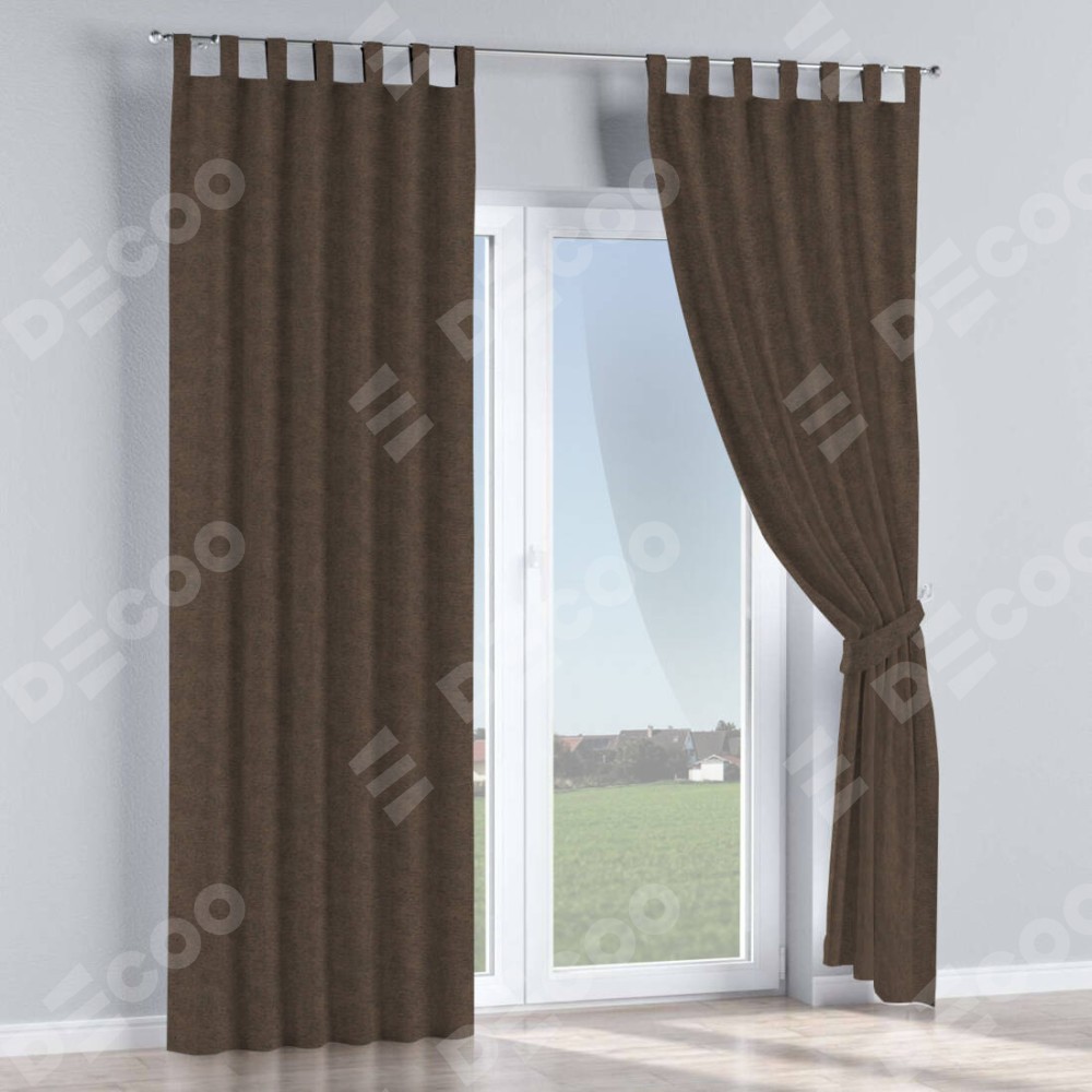 Комплект прямых штор, от производителя «Cortin», пошиты из ткани твид блэкаут тёмно-коричневый, артикул ткани 90933. Данная модель пошита на петлях, комплектуется на выбор круглым карнизом и подходит для монтажа на стену или потолок. Прямые шторы на петлях шьются по стандарту с коэффициентом 1/2 (на 100 см. ширины проёма 200 см. ширины ткани), отличительным преимуществом данной модели является простой способ монтажа. Достаточно повесить ее на трубу и штора готова!