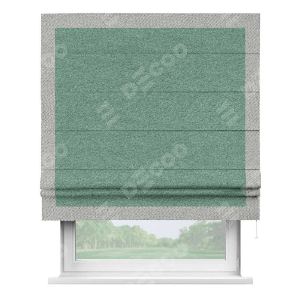 Римская штора «Кортин» с кантом Чесс, для проема, твид блэкаут бирюзовый