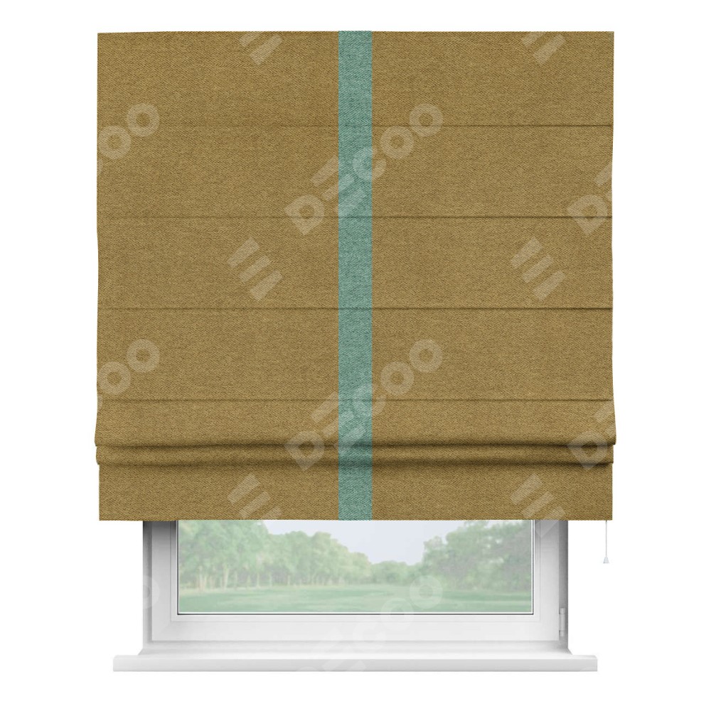 Римская штора производителя «Cortin», используется для проёма, пошита из ткани твид блэкаут горчица, артикул 91237. Отделка шторы кантом «Хайвэй», ткань для канта используется из твида разной расцветки на выбор. Имеет универсальный механизм и подходит для монтажа: на потолок, на стену и в нишу.