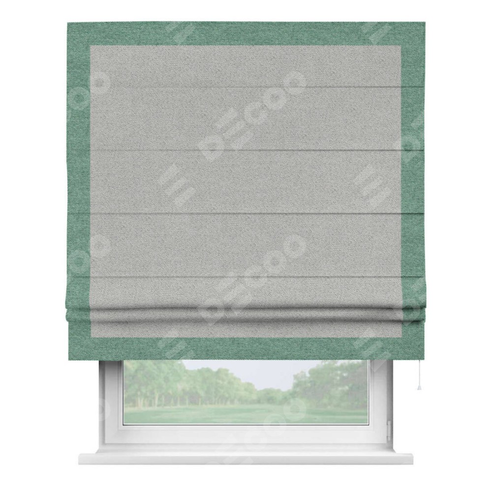 Римская штора «Кортин» для проема, твид блэкаут светло-серый, с кантом Чесс