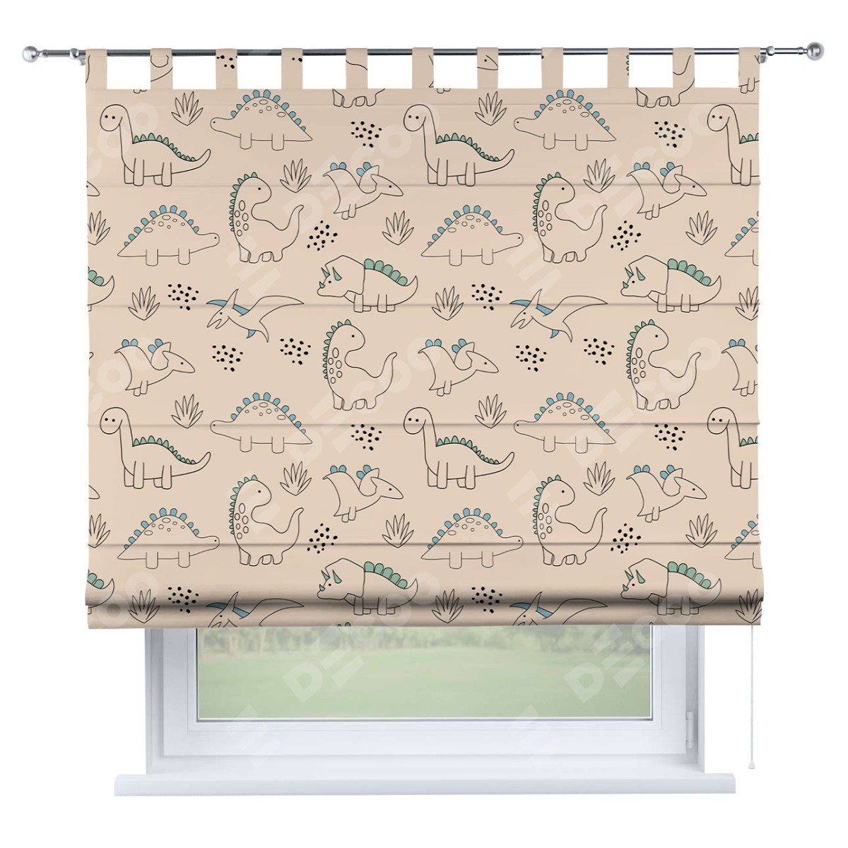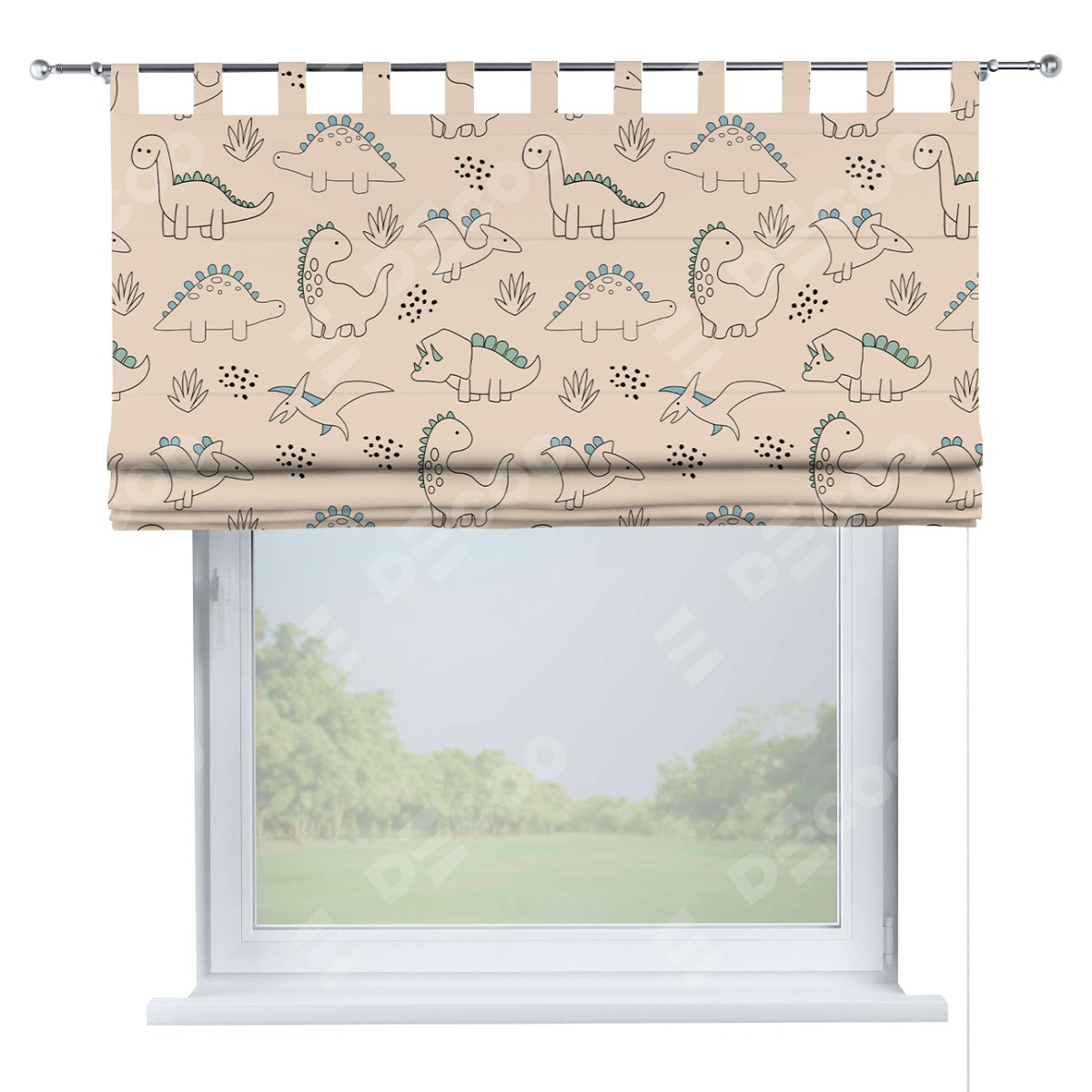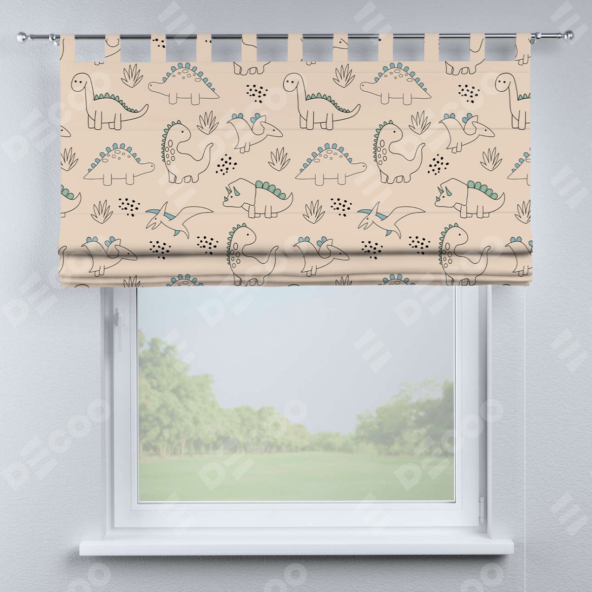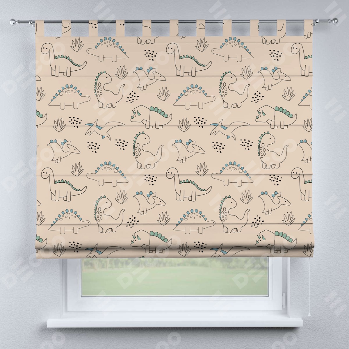 Римская штора производителя «Cortin», используется для проёма, пошита из ткани блэкаут с нанесением сублимационной печати «Динозаврики». Данная модель пошита на петлях, комплектуется на выбор круглым карнизом и подходит для монтажа на стену. Римская штора на петлях имеет простую систему регулировки высоты, отличительным преимуществом данной модели является простой способ монтажа. Достаточно повесить ее на трубу и штора готова!