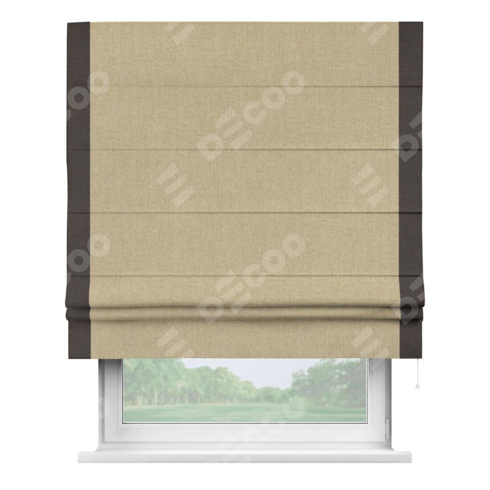 Римская штора «Кортин» для проема, лён димаут песочный с кантом Стрим Дуо